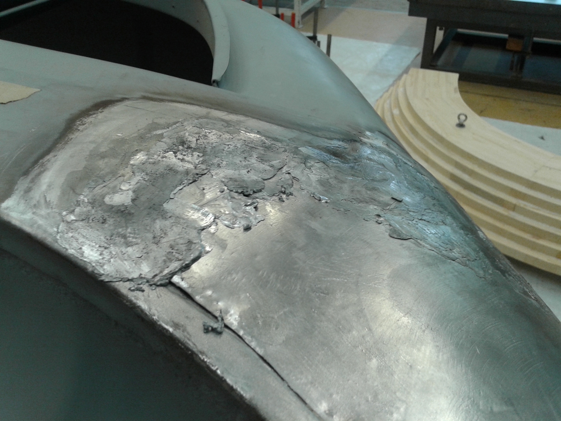 В отличии от шпаклёвки — олово не лопается десятилетиями, и мозно довольно толсто накладывать :-))