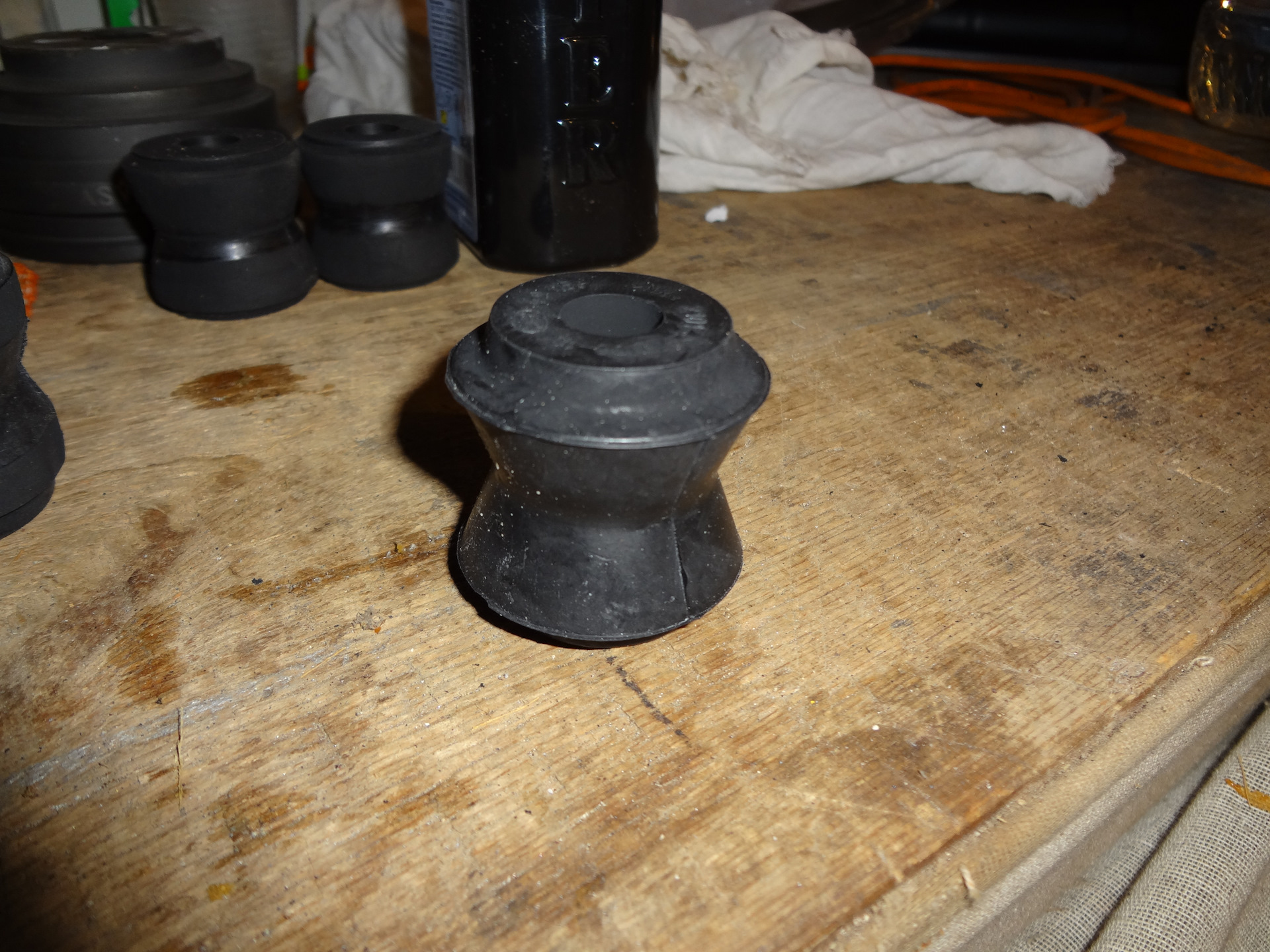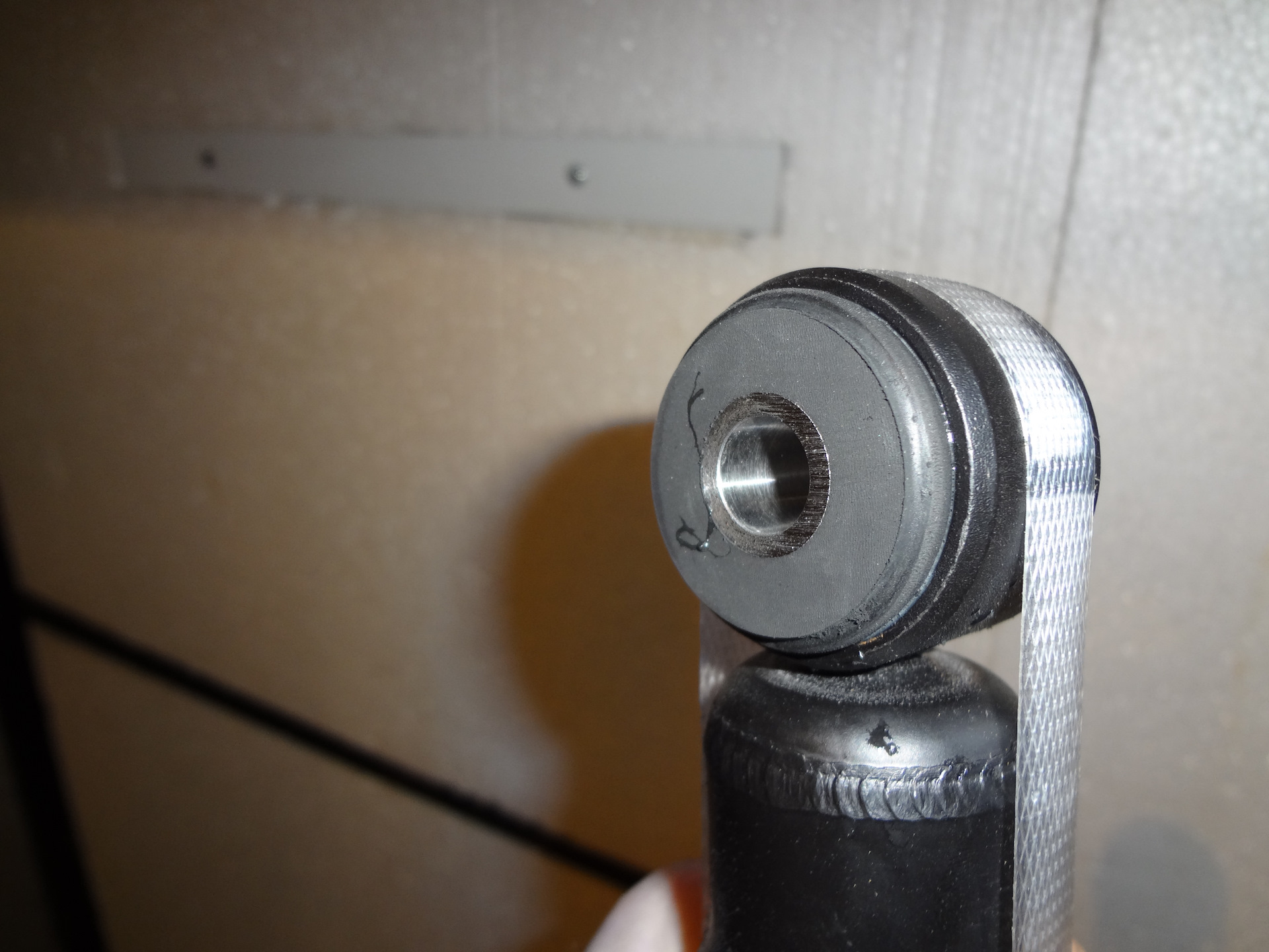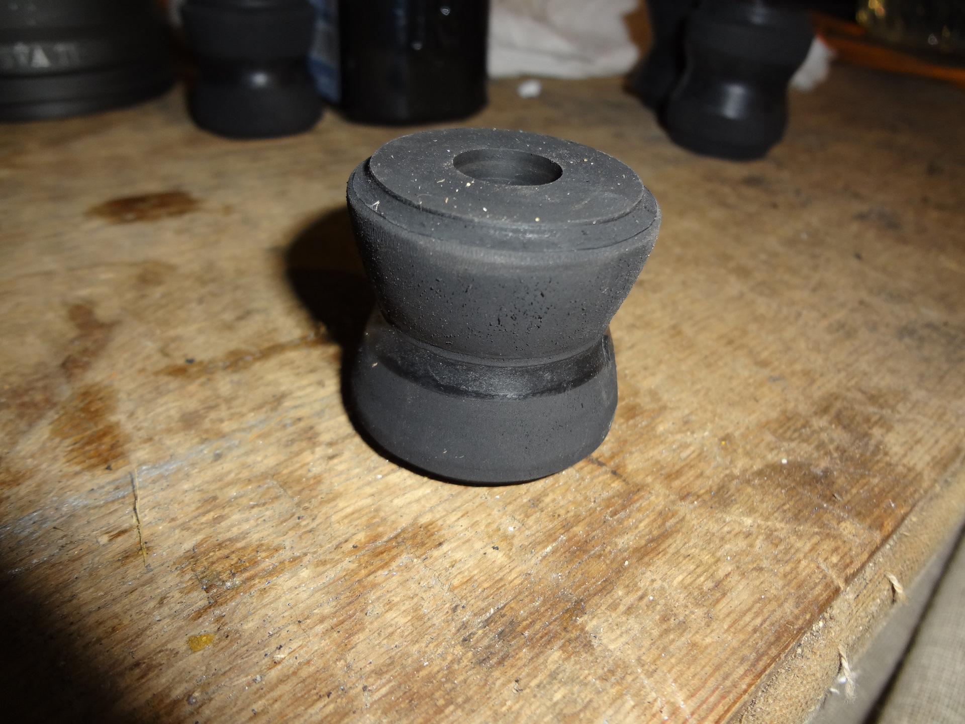 При задавливании втулки резинку довольно основательно расперло по длине (то, про что я написал в самом начале — можно было осевой размер делать поменьше). Излишки сточил на том же самом наждаке. Получилось, на мой глаз, вполне достойно