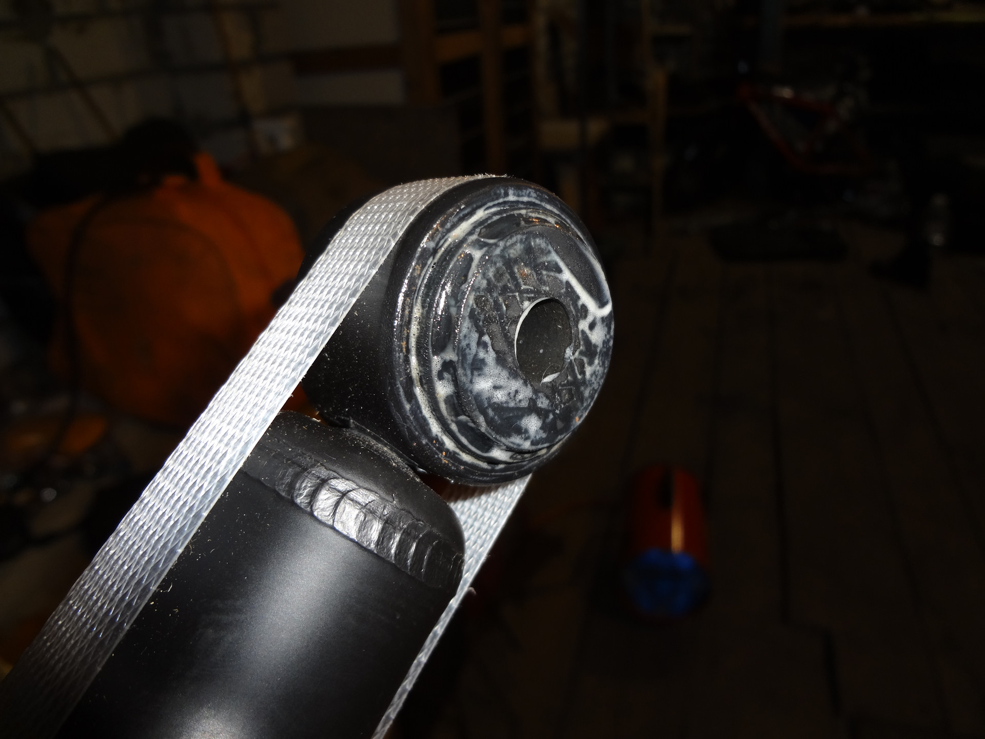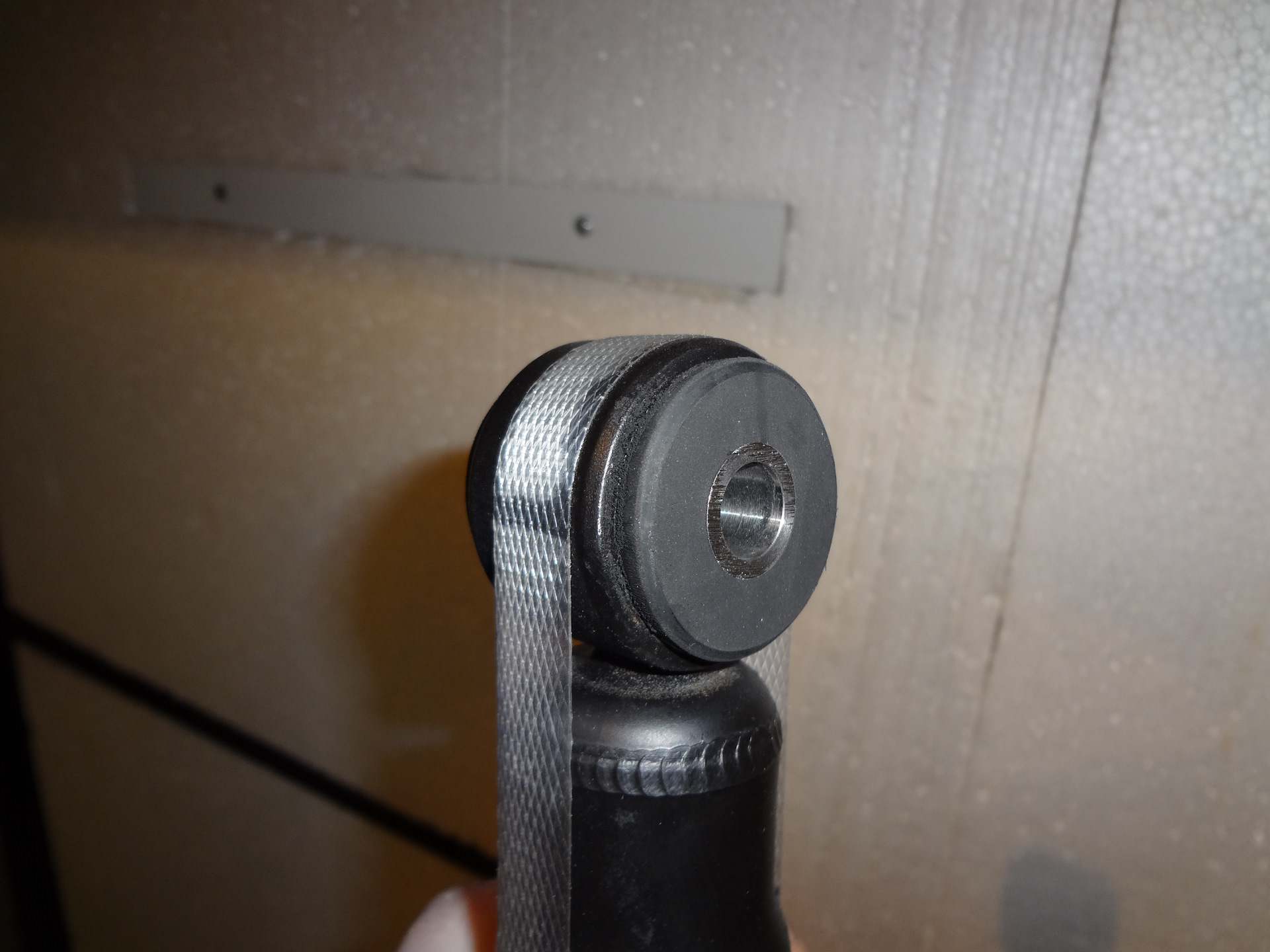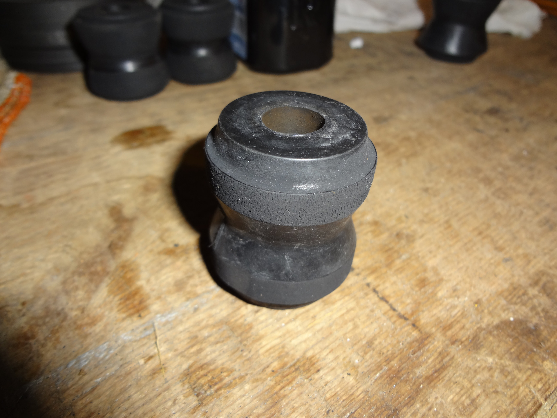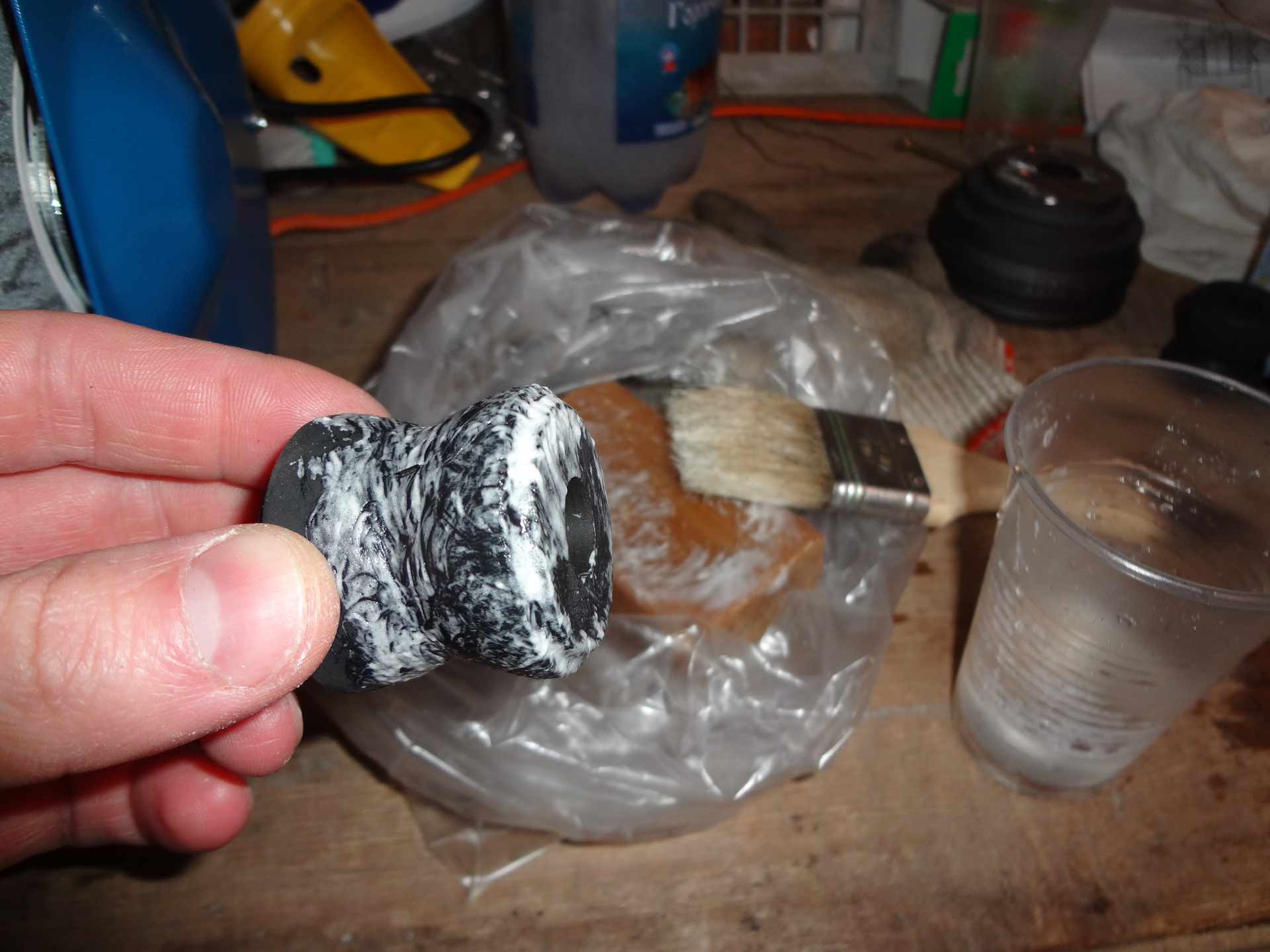 При задавливании втулки резинку довольно основательно расперло по длине (то, про что я написал в самом начале — можно было осевой размер делать поменьше). Излишки сточил на том же самом наждаке. Получилось, на мой глаз, вполне достойно