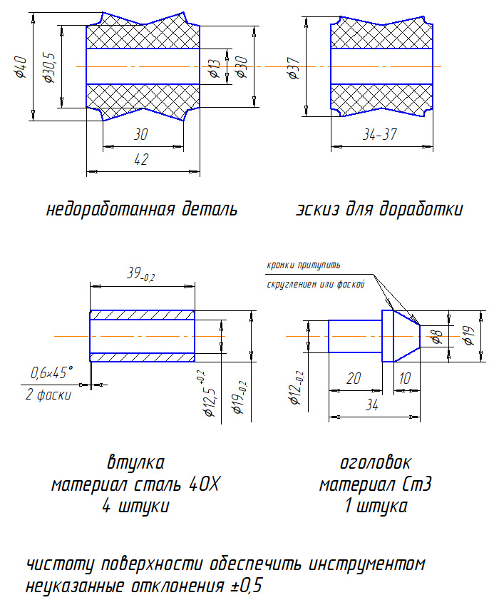 С торца они обтачиваются аналогично, свободным вращением на болте. Последовательно получаем следующую форму: