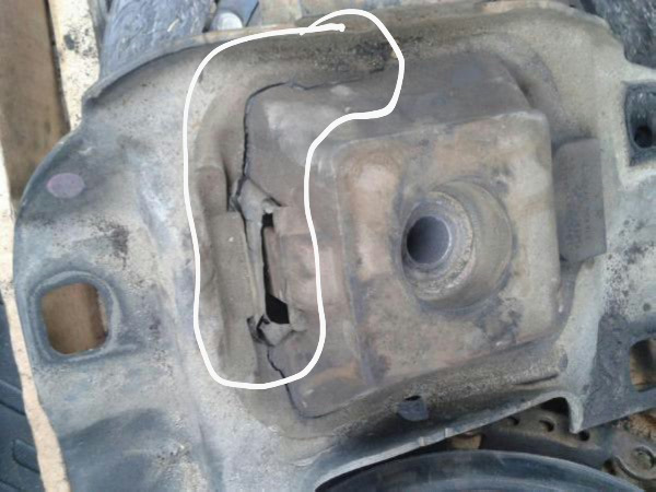 Это удивительно, т.к. при таком состоянии подушки (порвана на две части), я бы ожидал диких вибраций во всех диапазонах работы двигателя. По факту, были только незначительные вибрации на педале газа с 4х тысяч оборотов.