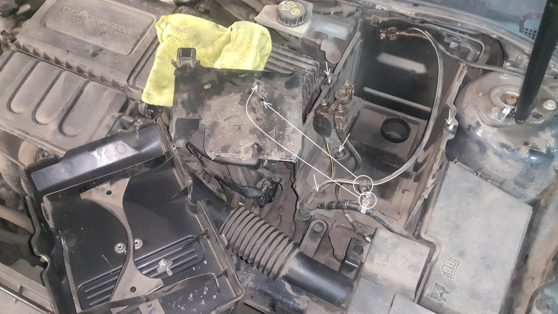 Под ящиком АКБ находится "панель", которую тоже придётся снять: