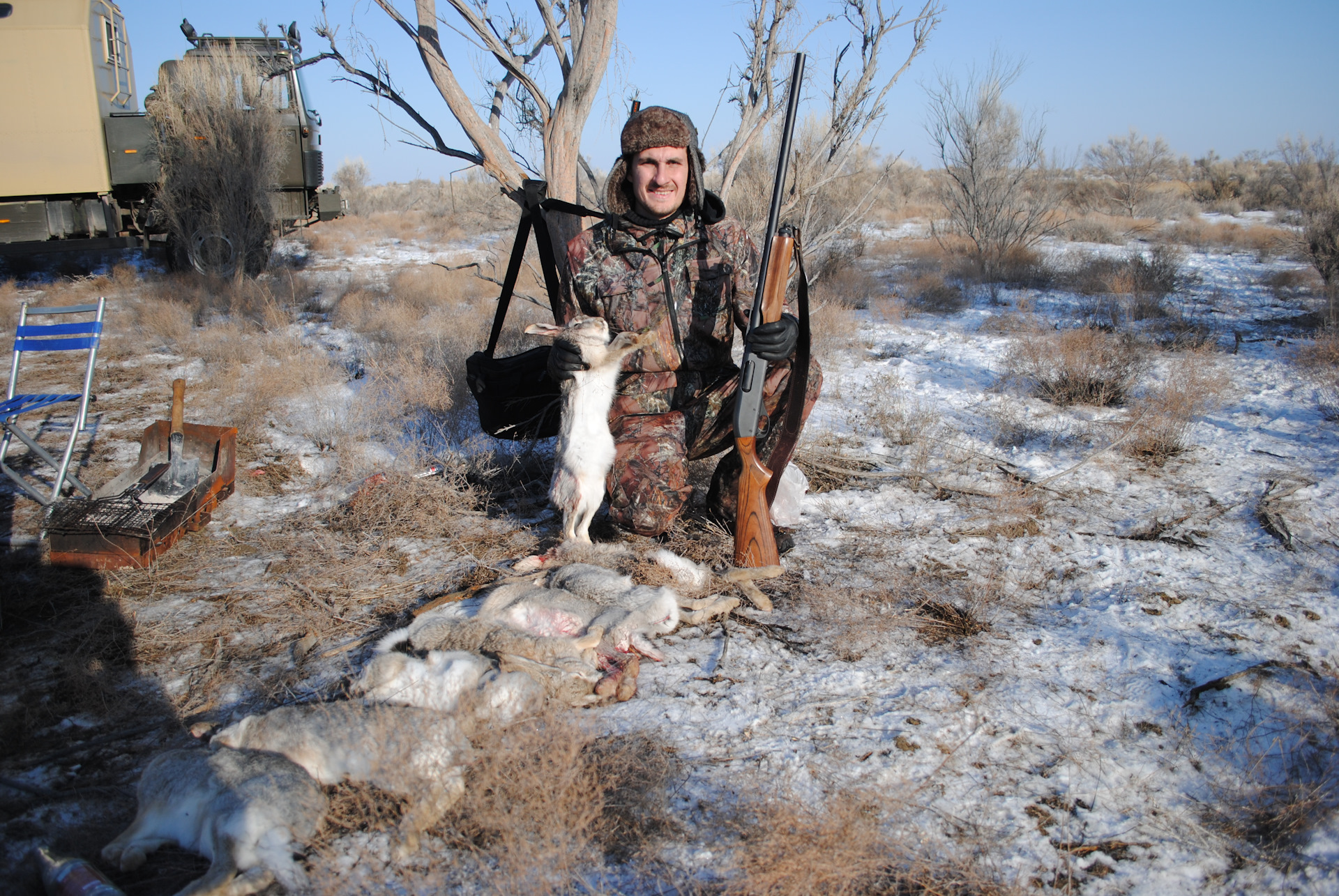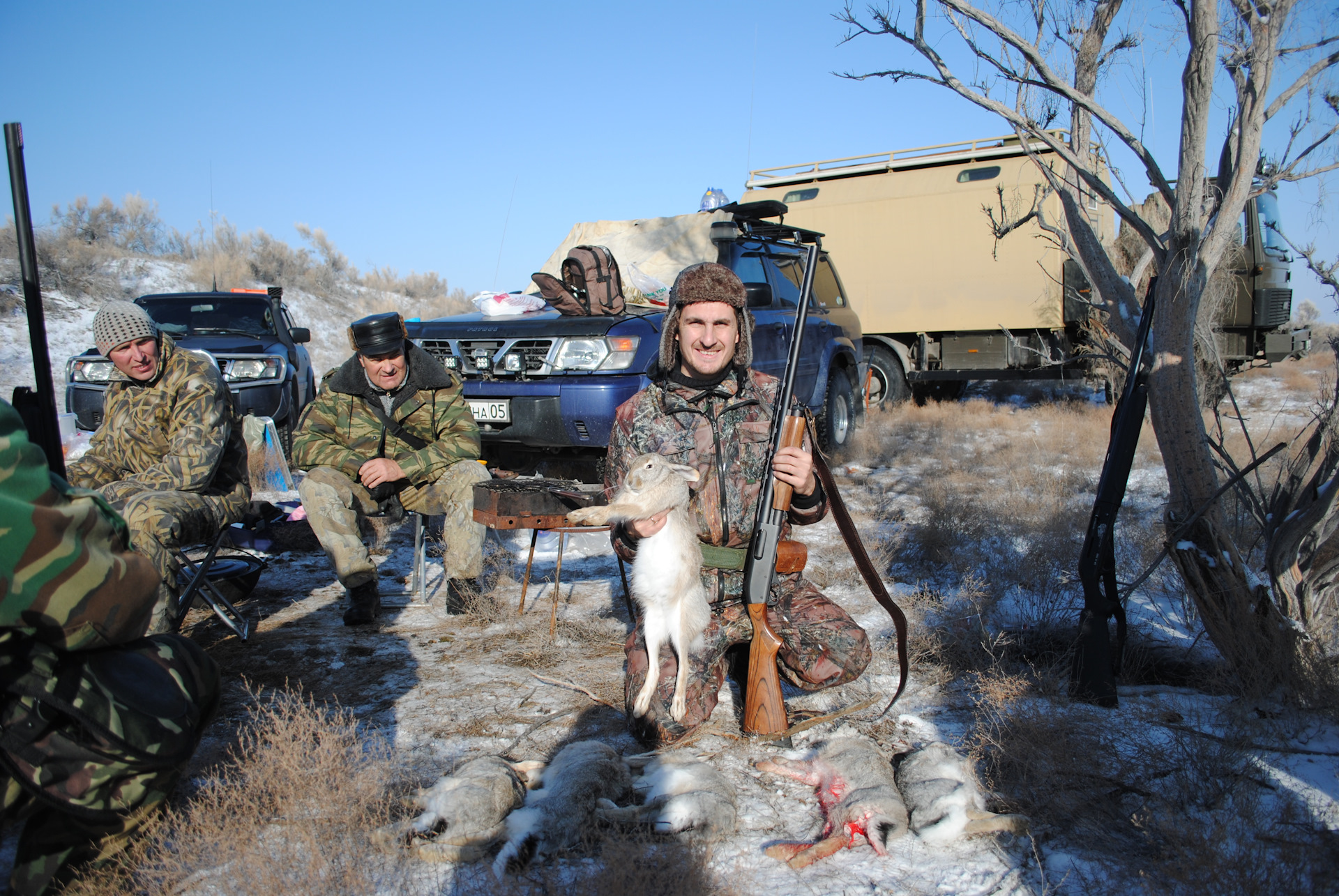 Под вечер уже сытые, наелись шулюма из зайчатинки!