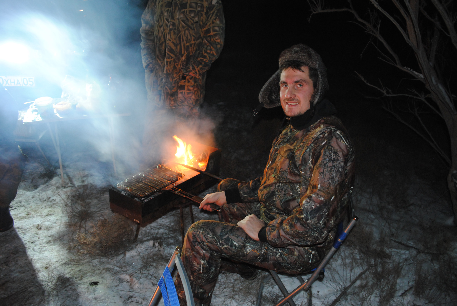 Приехали уже ближе к полуночи, голодные, уставшие от скользкой дороги, но в отличном настроении! Жарим колбаски.