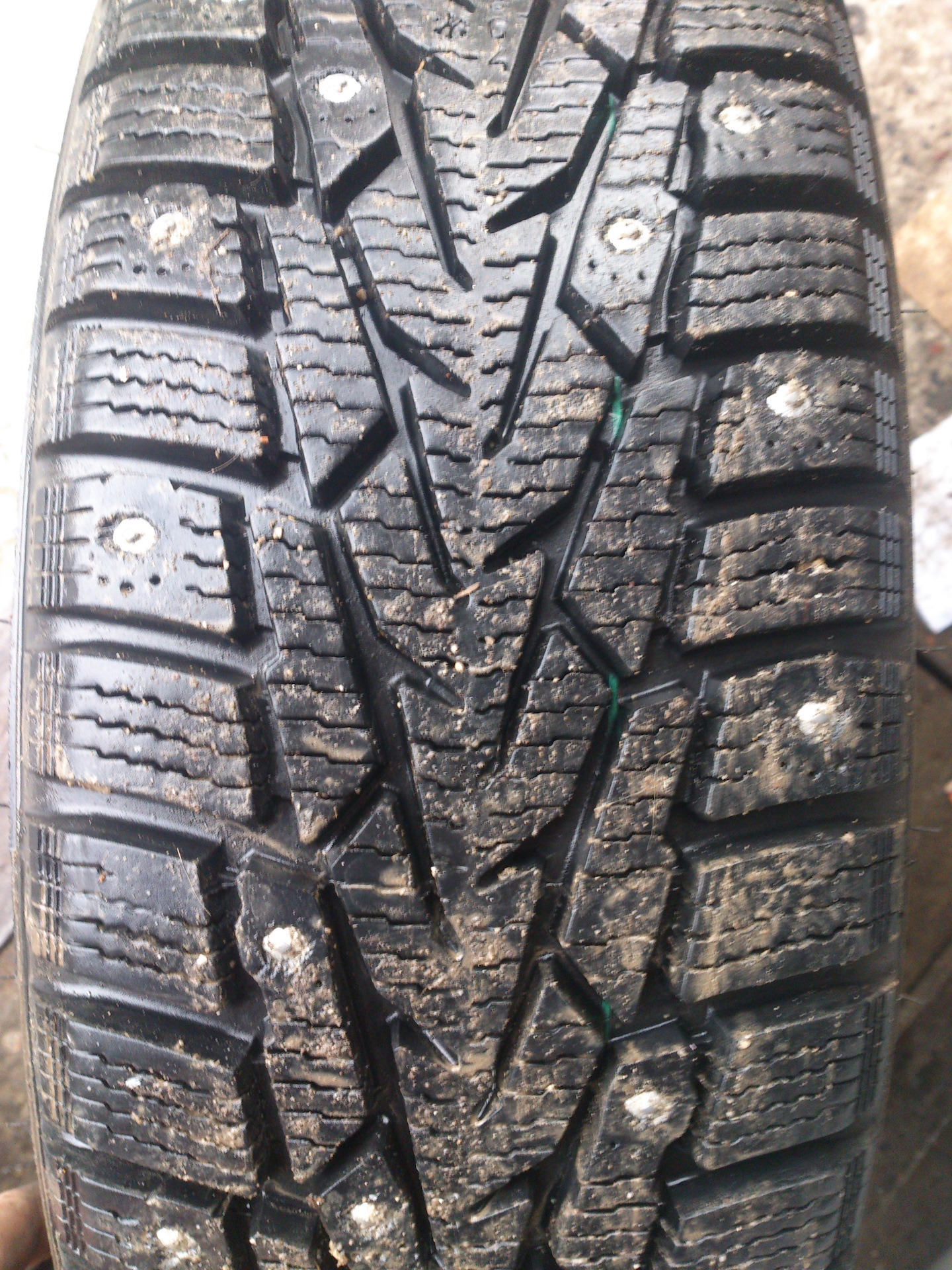на последнем фото, видно износ резины вокруг шипов, у меня примерно также, подозреваю это от езды по асфальту и от скорости (тем более в поворотах))