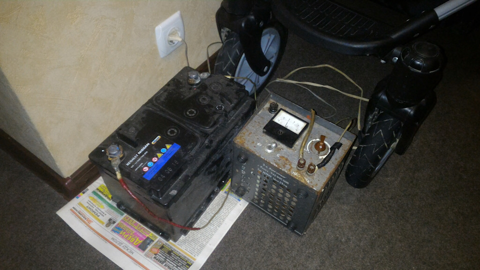 06.01.2017 г. решил прогреть автомобиль. Температура окружающей среды была -23 градуса. Включил штатный дистанционный запуск, автомобиль достойно попытался запустить двигатель, но увы, — не смог. И так три раза. Я вышел на улицу, попробовал в ручном режиме запустить. Не вышло — стартер крутит, а двигатель не заводится. Пытается схватиться, но у него не получается. В итоге я посадил аккумулятор. Не беда. Снял аккумулятор, принес домой, поставил на ночь на зарядку. Использовал папино старое доброе трансформаторное ЗУ.