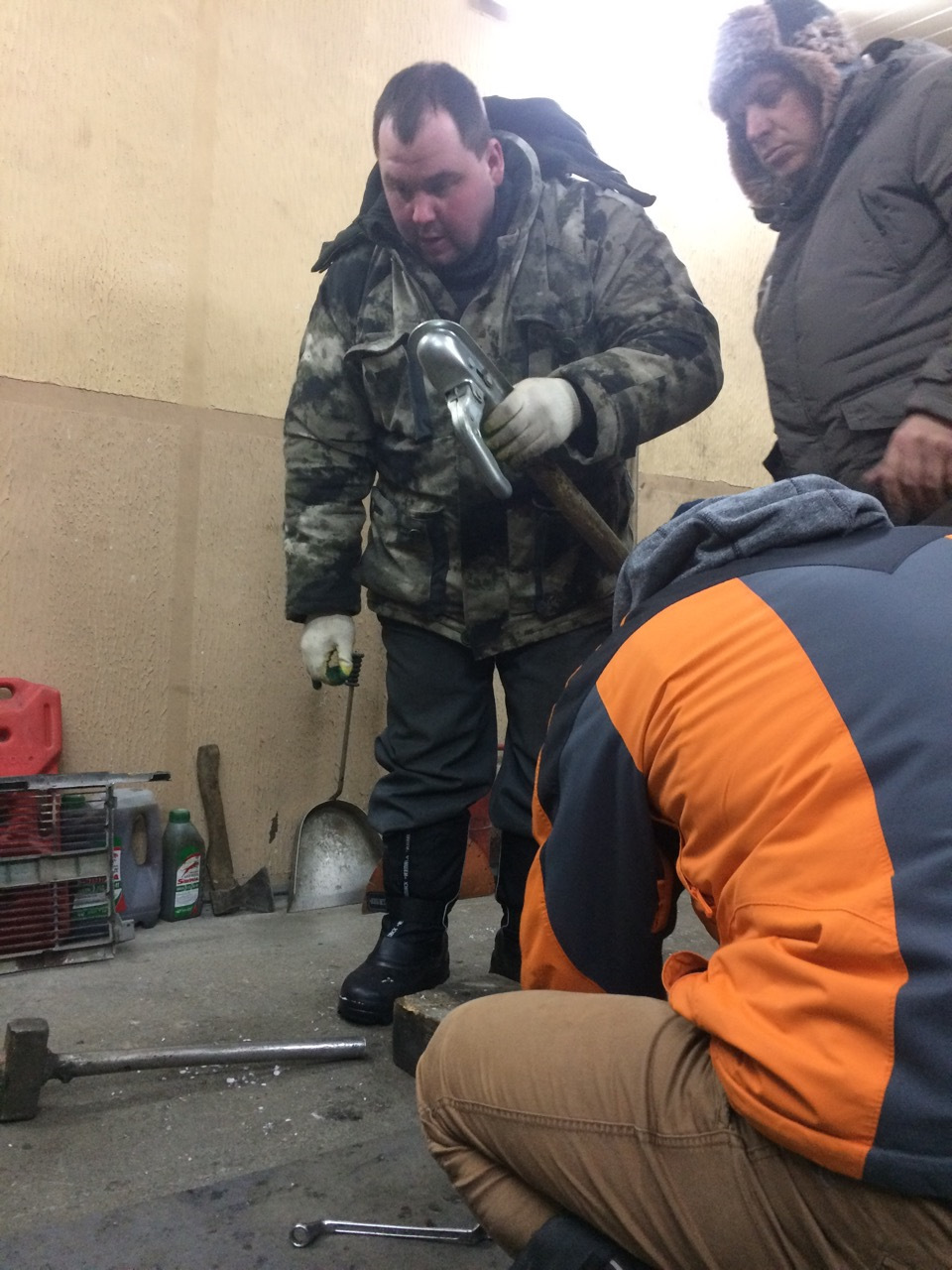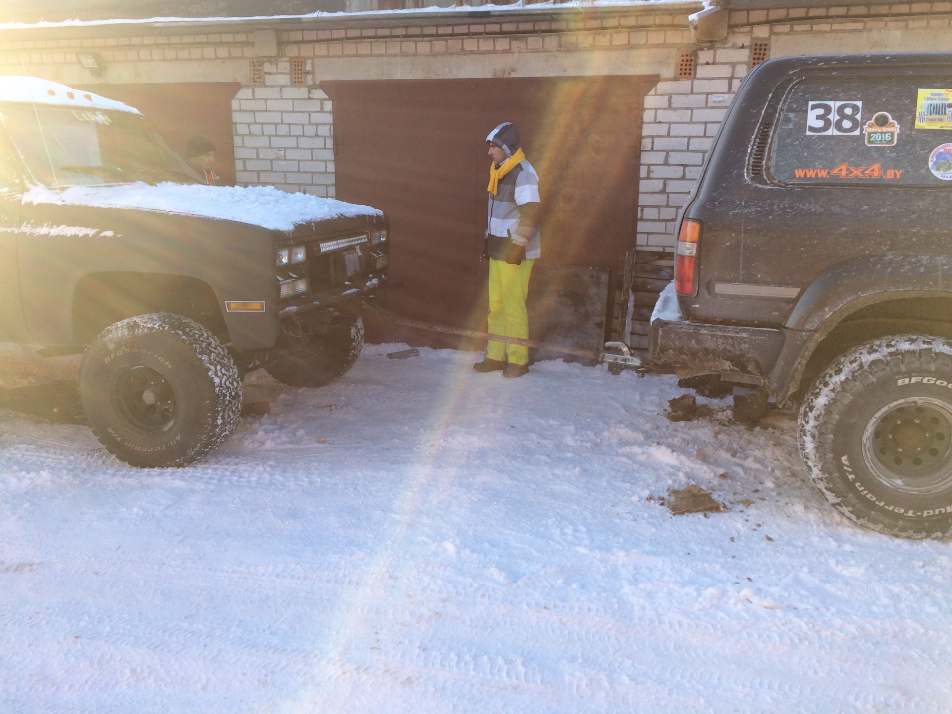 Ну хз что тут сказать… Радиатор и патрубки снял Перетянули Сабура себе на базу… Начнём вынимать мотор с акпп и передний мост Все под переборку Очень ветрено так Мороз кажется вообще жестким