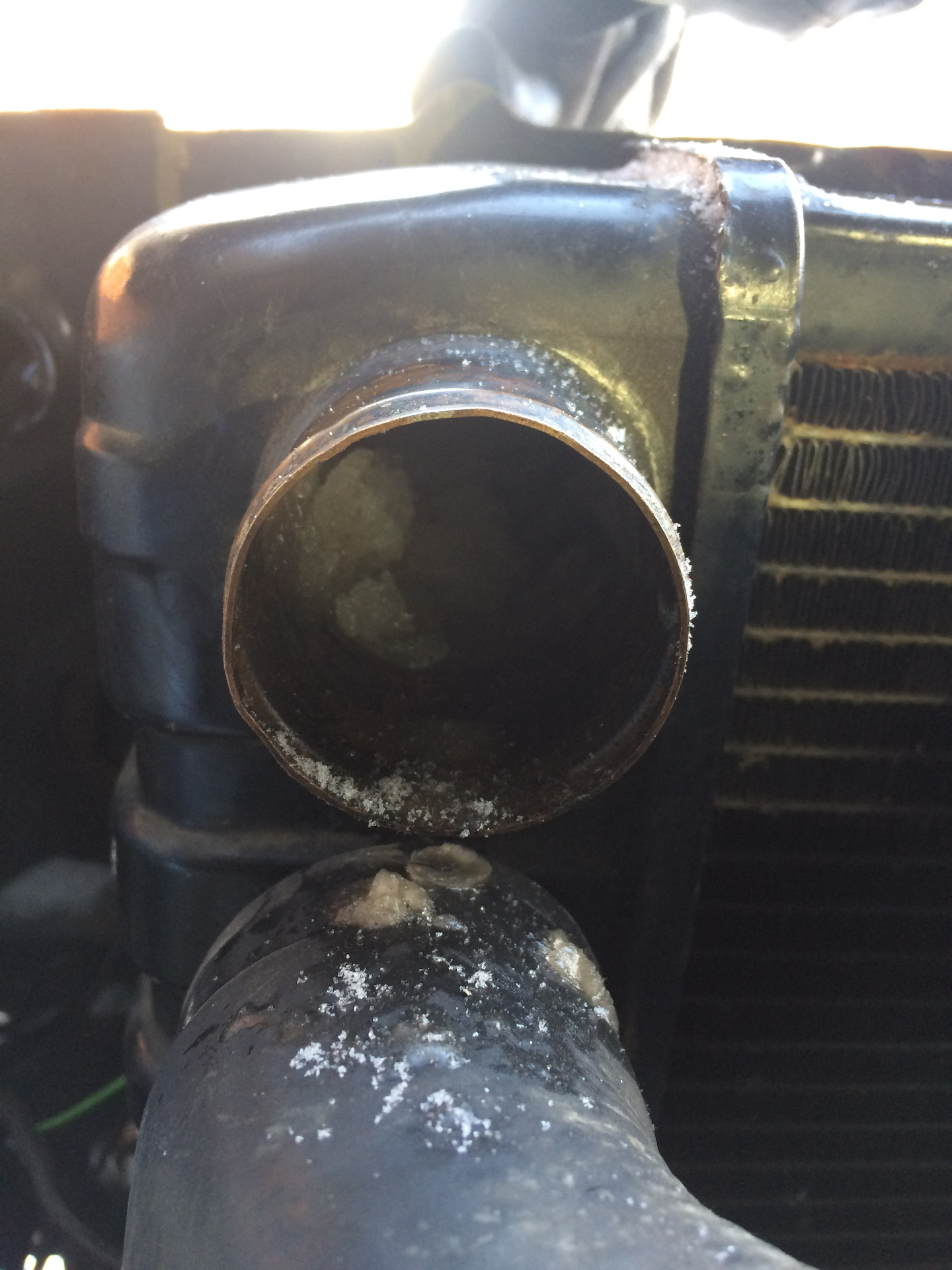 печально. ну у тебя еа фото видно, что антифриз прям льдом стал… в моем случае после отогрева были хлопья с некоторым количеством жижи, забившие патрубки и соты наглухо.