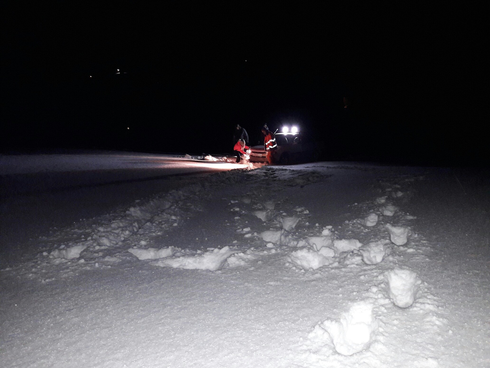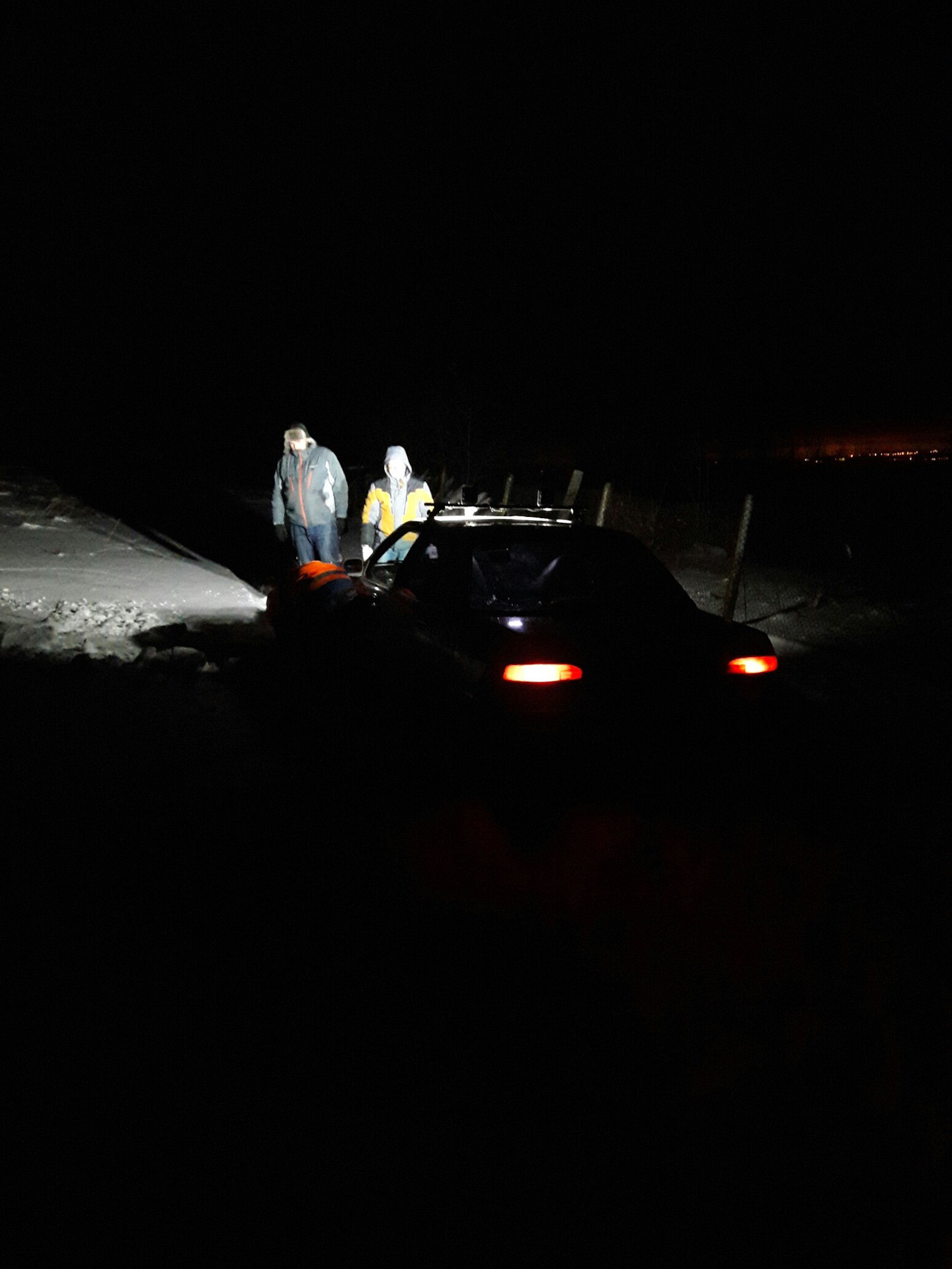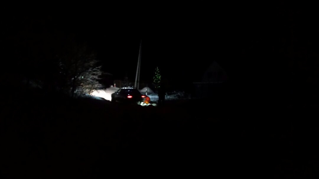 вечер с первого на второе слегка затянулся, а мысль попасть на гору ну ни как не опускала! Поэтому я мобилизовал народ, и в 2 часа ночи мы поехали. В этот раз через деревню, тем самым проехав сразу до последней трети пути по чищенной дороге. дальше метров 200 по чей то колее, ведущей к домику с ёлкой