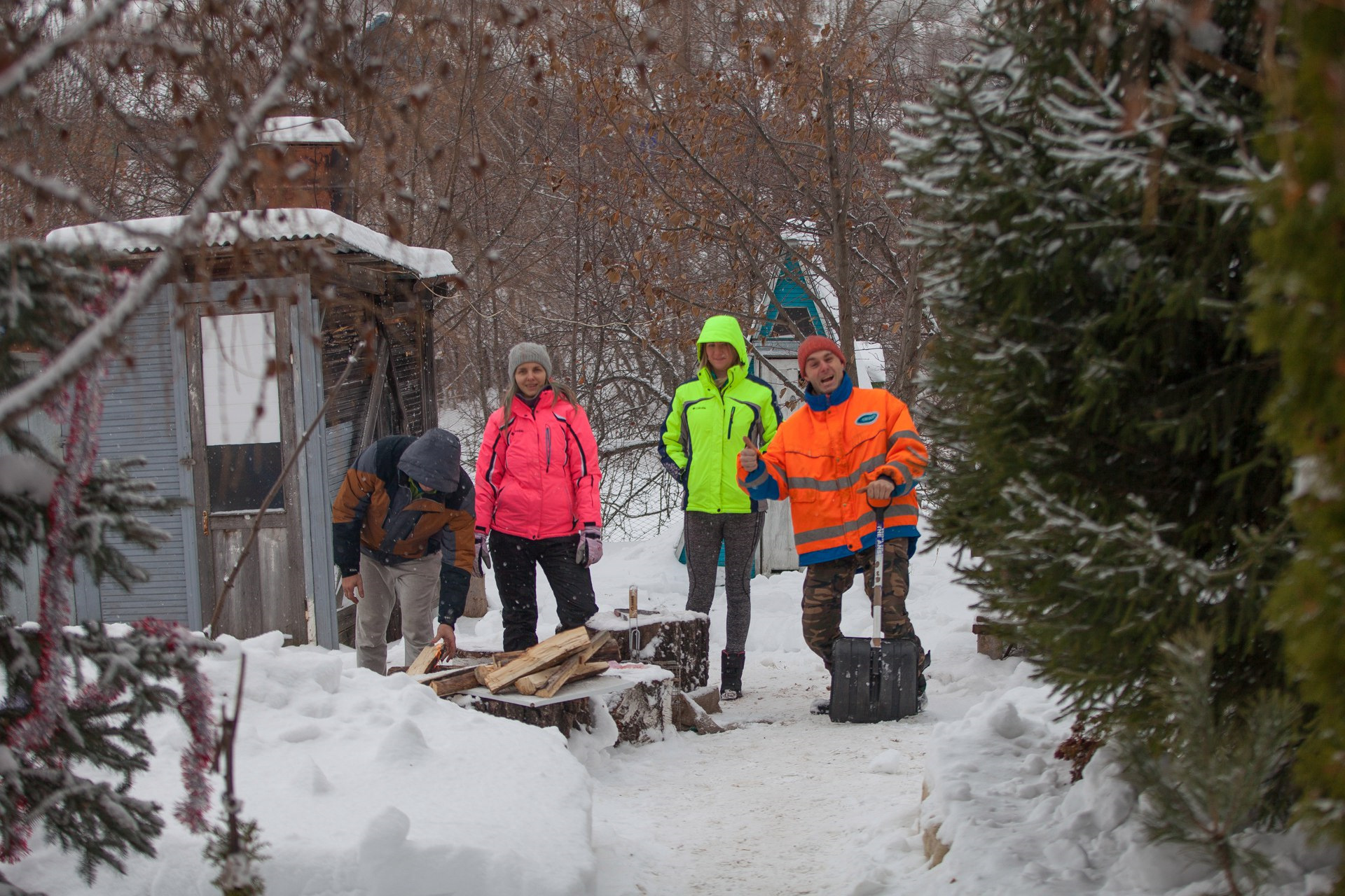 А вот в гору… в гору пришлось рубиться. по 20-30 см иногда, иногда по метру-два. Пока Игори и Алёнка катались на ватрушке, я с Анюткой рубились))
