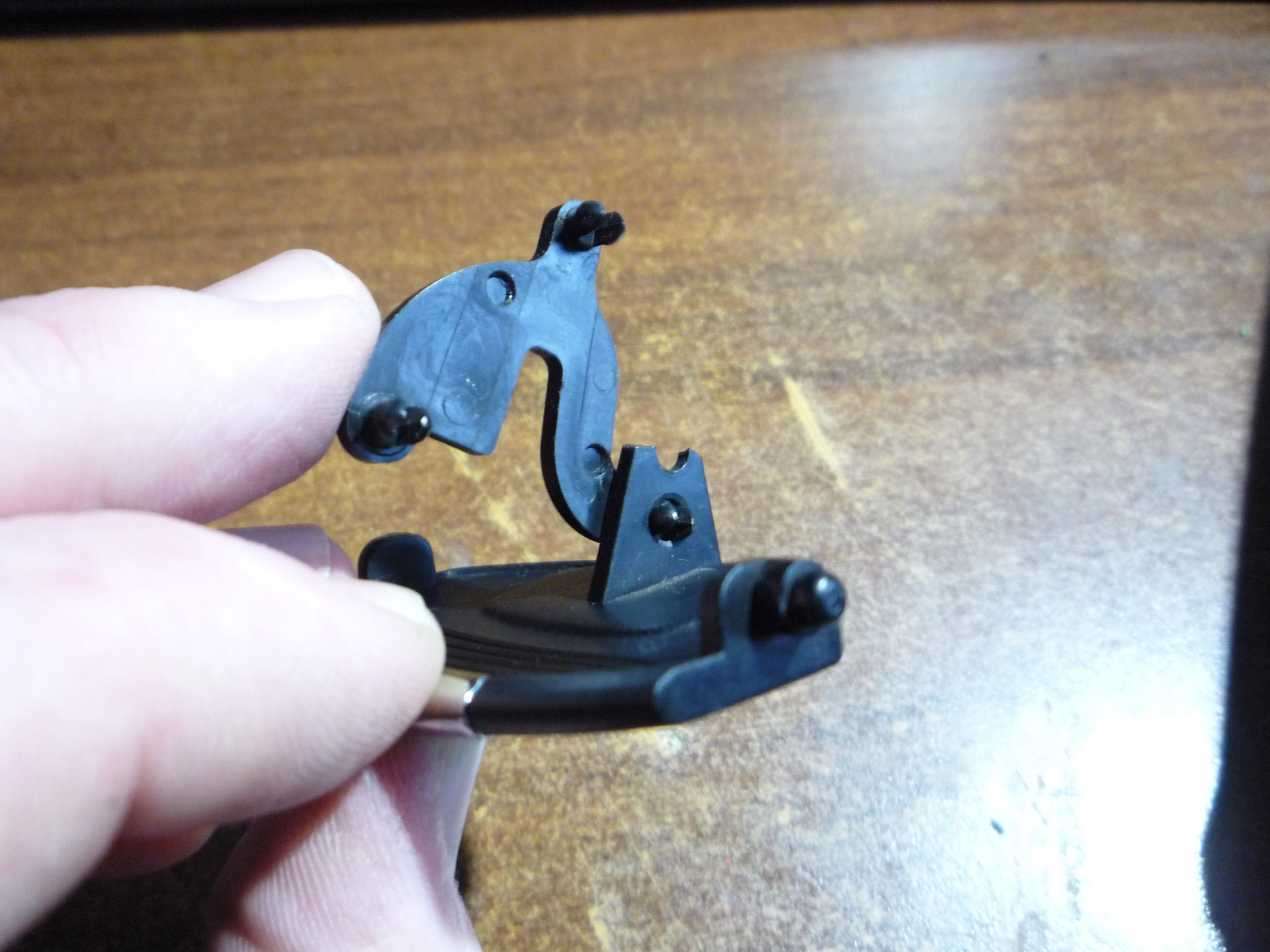 Далее складываем рядом оба как они стоят.и размечаем на втором в оставшемся пластике на кронштейне место и сверлим второе отверстие.ниже целого родного или сломанного.это делается для выравнивания высоты плеч, что бы открытие было синхронным.