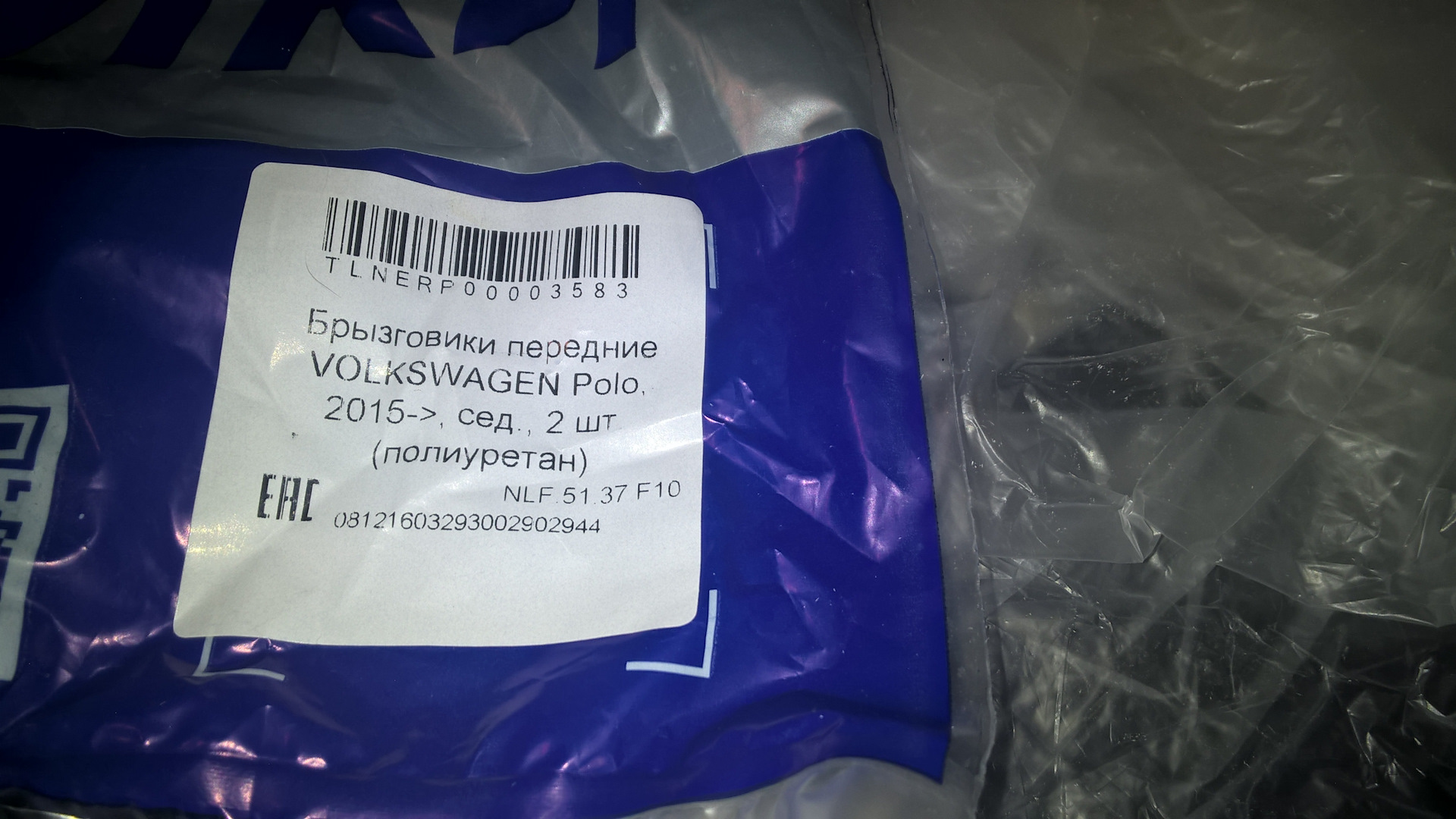 Еще раз здрасте🙂Сегодня приехали, ранее заказанные, брызговики на Поло рестайл.Выкладываю фото и коды крупным планом, вдруг кому пригодиться.
