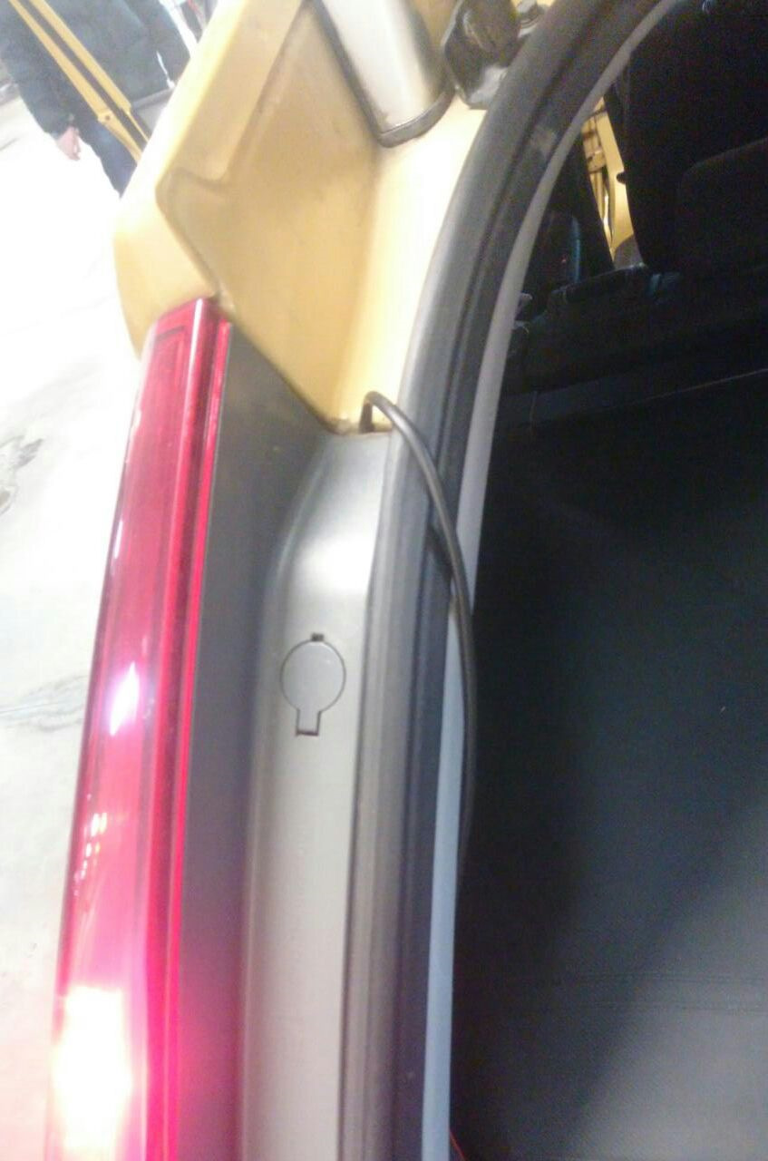 2) Через отверстие для проводки заднего фонаря в машину был пропущен провод, далее ушедший под крышей вдоль всей машины под торпеду, и выведен изнутри к самому нижнему отверстию в центральной панели (там какой-то ящичек с откидной крышкой был). Особое внимание тут было уделено тому, чтобы проходящий по верху провод проходил под боковыми подушками безопасности, дабы при их аварийном раскрытии (не дай бог конечно) провод этому раскрытию не помешал. Свободный конец провода с креплением антенны (около 1 метра длиной) аккуратно заводится в багажник и там лежит, когда антенна не нужна.