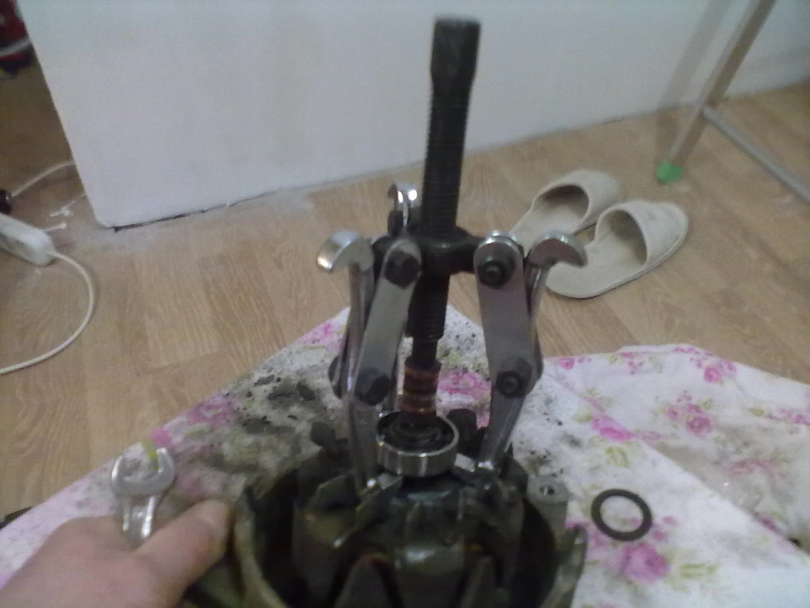 Хочу еще добавить контактное кольцо надел подложив с верху брусочек и по немного забивал молотком, подшипник надел поставив с верху головку из набора что бы совпадала по внутренней обойме и так же молотком легко наделся.