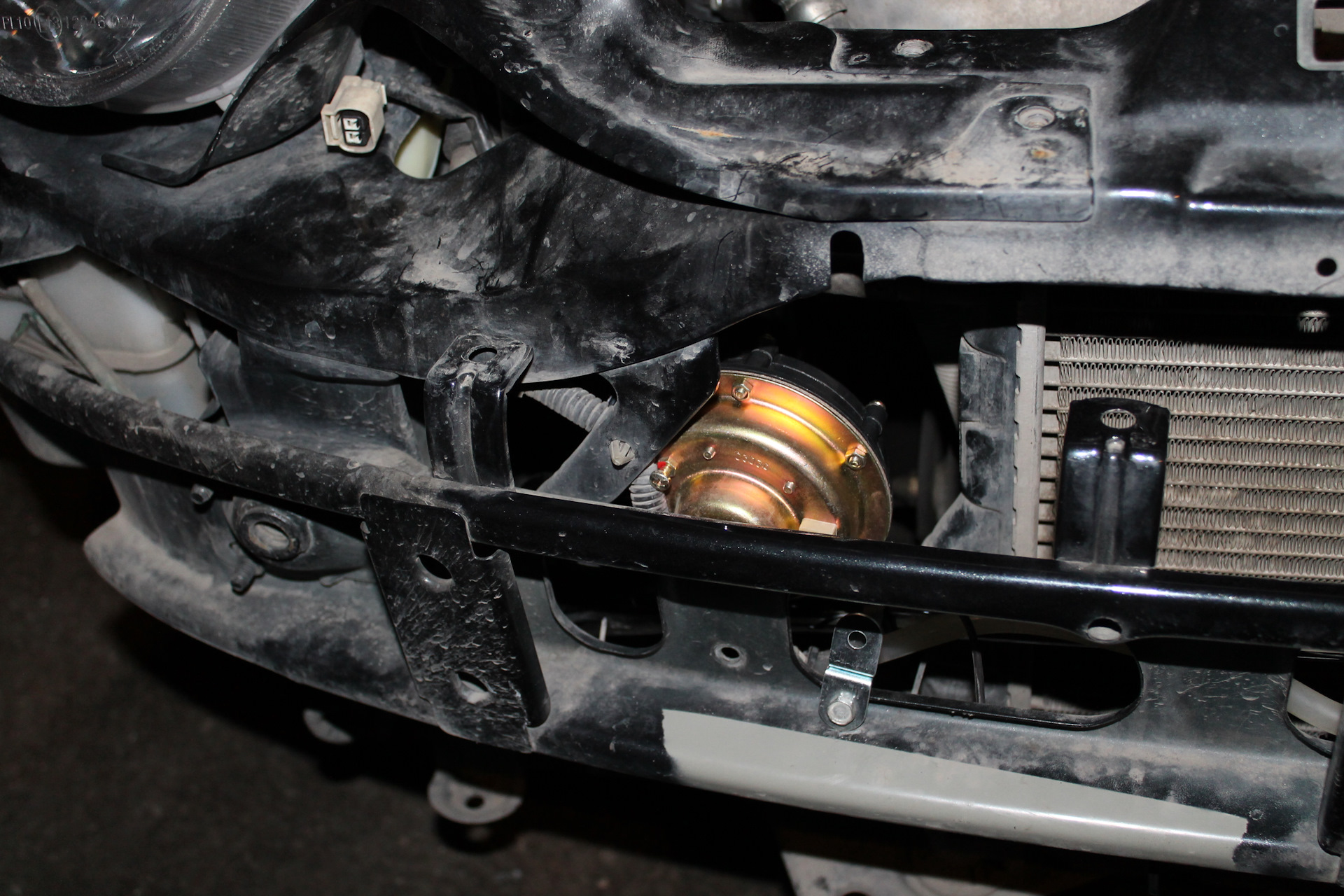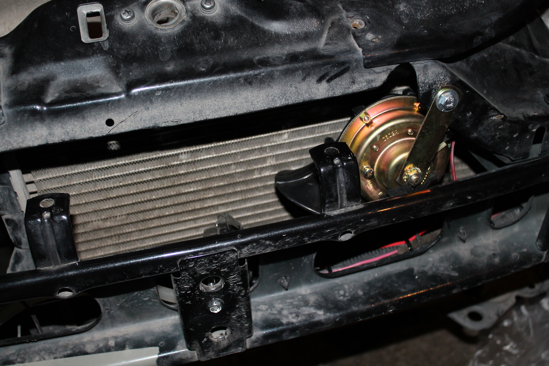 Снял я бампер и начал искать место, куда бы я мог расположить Волговские сигналы. Из-за своих больших улиток, их не так просто разместить. Можно придумать пластину и на неё установить оба рожка, но в моём случае их попросту некуда было бы поставить. Поэтому я их разделил и начал примерку. Устанавливал сигналы, затем пробовал одеть бампер и когда с 5 попытки, сигналы нашли своё место, я начал подключение.
