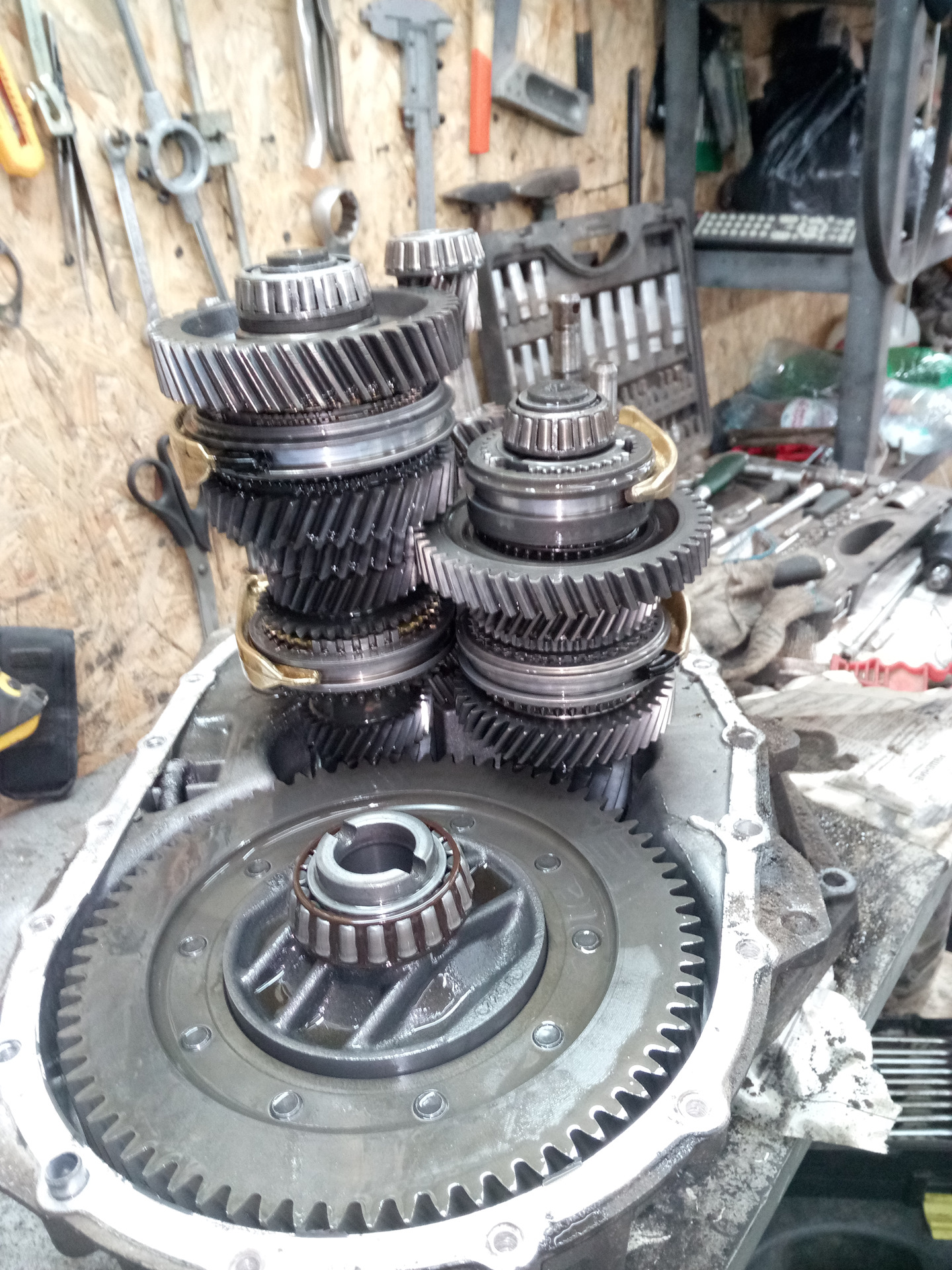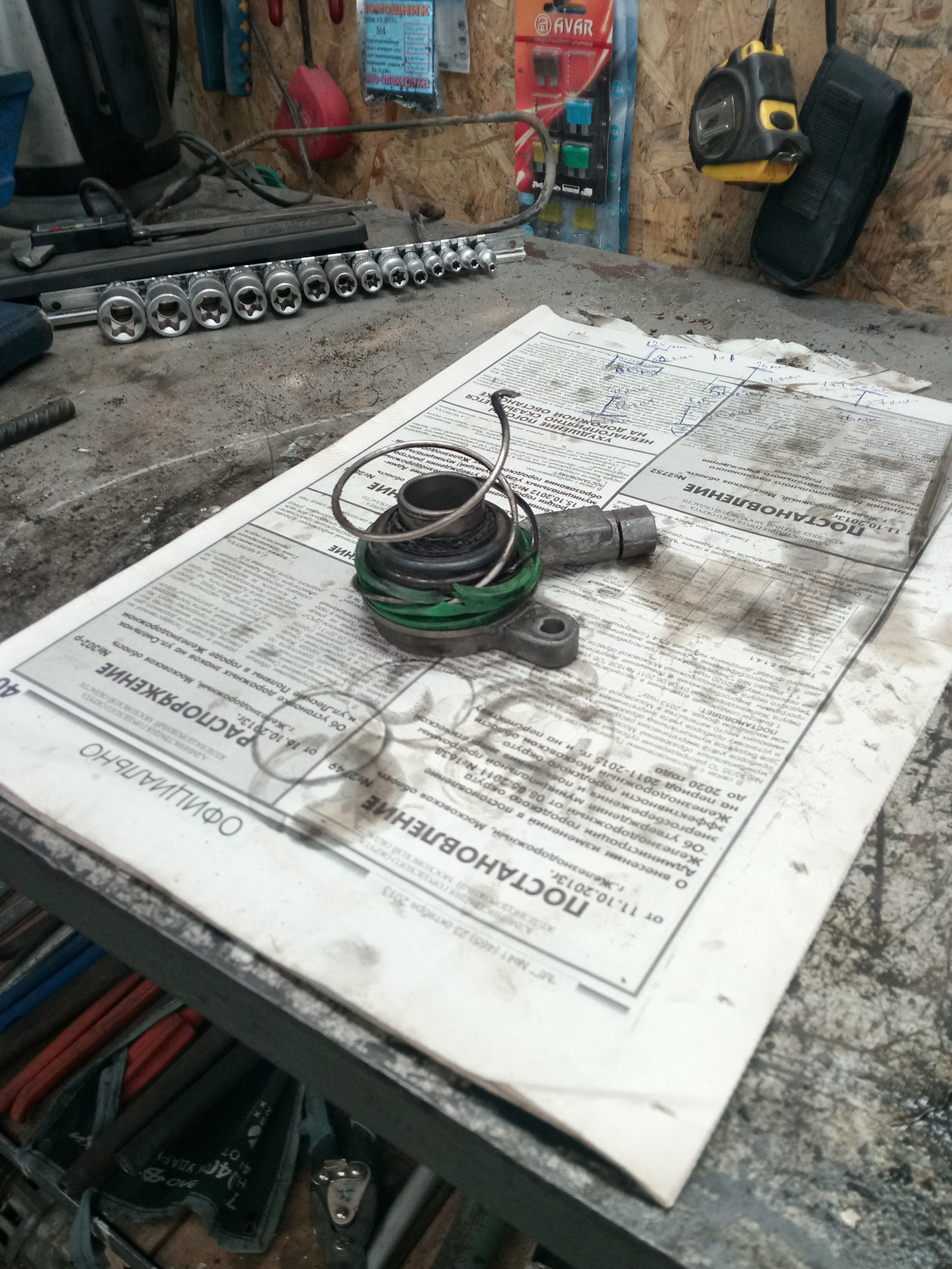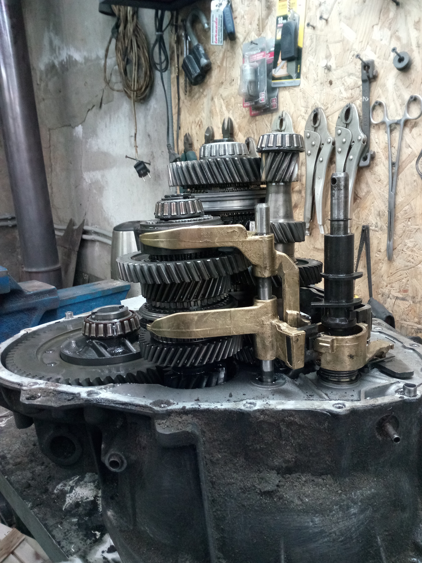 Приветствую всех. В общем мой не когда не подводивший меня БЕЛАзик решил заставить меня заменить рабочий цилиндр сцепления с подшипником. Все бы не чего если бы это случилось не 28.12.2016 вечером. Но обо всем по порядку. Все началось практически с момента покупки авто. После некоторой эксплуатации БЕЛАЗика я услышал что если резко отпустить сцепу то слышен стук, но только если бросить педаль. Я естественно забеспокоился и к корешу на подъемник. Было принято решение снять коробас так как сырел задний сальник коленвала, непонятно в каком состоянии сцепа, ну и стук. Сцепа оказалось еще в приличном состоянии но была заменена на новую(VALEO 826816) а вот с рабочим цилиндром косячек (как всегда меня налюбил любимый всеми магаз на букву "Е") пришел не мой. На тот момент я не мог больше держать машину в сервисе да и ребята сказали что цилиндр с подшипникам в очень хорошем состоянии, и мы установили назад целиндр с новой сцепой. По поводу стука не чего криминального не нашли первичный вал без люфта, ребята предположили что это может быть диск. Но после сборки стук естественно остался. От разборки коробаса ребята меня отговорили так как стук тихий и только если бросить. То есть при разборки вряд ли бы что либо всплыло. Как потом окажется и правильно что не разобрали. В общем забив на замену рабочего цилиндра я удачно накатал чуть больше 100 000км до его кончины полной и без поворотной. Так же к этому в начале на шестой потом и на пятой появился гул, а на второй при сбросе газа тоже появился гул с потрескиванием. В общем на следующий день я объехав несколько более мение внушающих доверия сервисов получил ответ, приезжайте после нового года, на ара сервис я ехать не захотел. В общем пришлось просится к знакомому на подъемник. Он конечно не отказал но в боксе отсутствовало отопление. Так как выбор был не велик и на улице было как то не очень холодно на тот момент я скинул коробас и в честь затяжных праздников решил разобрать коробас и выяснить все причины косяков. В общем самый страшный косяк который как я предполагаю (еще не много и я попал бы на коробас) была выбита обойма подшипника очень даже сильно(к сожалению много фото было утоплено с фотикам, но те что остались, сделаны на телефон я выложу в конце) на остальных обоймах и роликах были следы сильного износа. Еще мне кажется что уже под ношен синхрон на второй передаче так как он имеет самый маленкий зазор(в мороз на не прогретой машине тяжеловато включается вторая). К стати если у кого есть мануал или какая либо информация по ремонту этих коробок прошу поделится так как я ни чего про них не нашел ну или плохо искал. Теперь про стук при бросании сцепления, в моем случаи это выжимной цилиндр с подшипникам после его замены стук ушел. Сам подшипник перед тем как рассыпался не шелестел и не подавал не каких признаков кончины. Так что этот узел лучше поменять в месте с сцепой. Он продается отдельно. После замены всех подшипников, сальников, все гулы, трески и прочие болячки покинули мой коробас. Сальники были сухие и менялись на всякий случай. На сцепе можно было еще поездить (если кому интересно то фото и замеры остатка диска могу сделать) но менять так менять. После замены рабочего цилиндра сцепление (оригинал а на LUK) стало мягче. Установка коробаса на место было ужасным -27 в боксе. Но оно того стоила. Проехал уже 300км все 