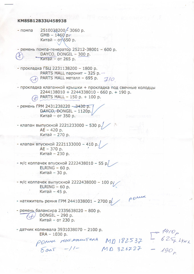 Привет всем! Пятница 13 пагубно повлияла на мою Санту(( печаль-беда…обрыв ремня ГРМ( contitech), который прошел 38т.км. Вскрытие показало, что ремень тупо высох и весь в трещинах, естественно подзагнуло клапана. Вопрос бывалым мастерам по поводу запчастей, выше список, что хочу купить, посоветуйте или отговорите от каких либо позиций . Не могу найти в Экзисте обводной ролик ремня ГРМ,