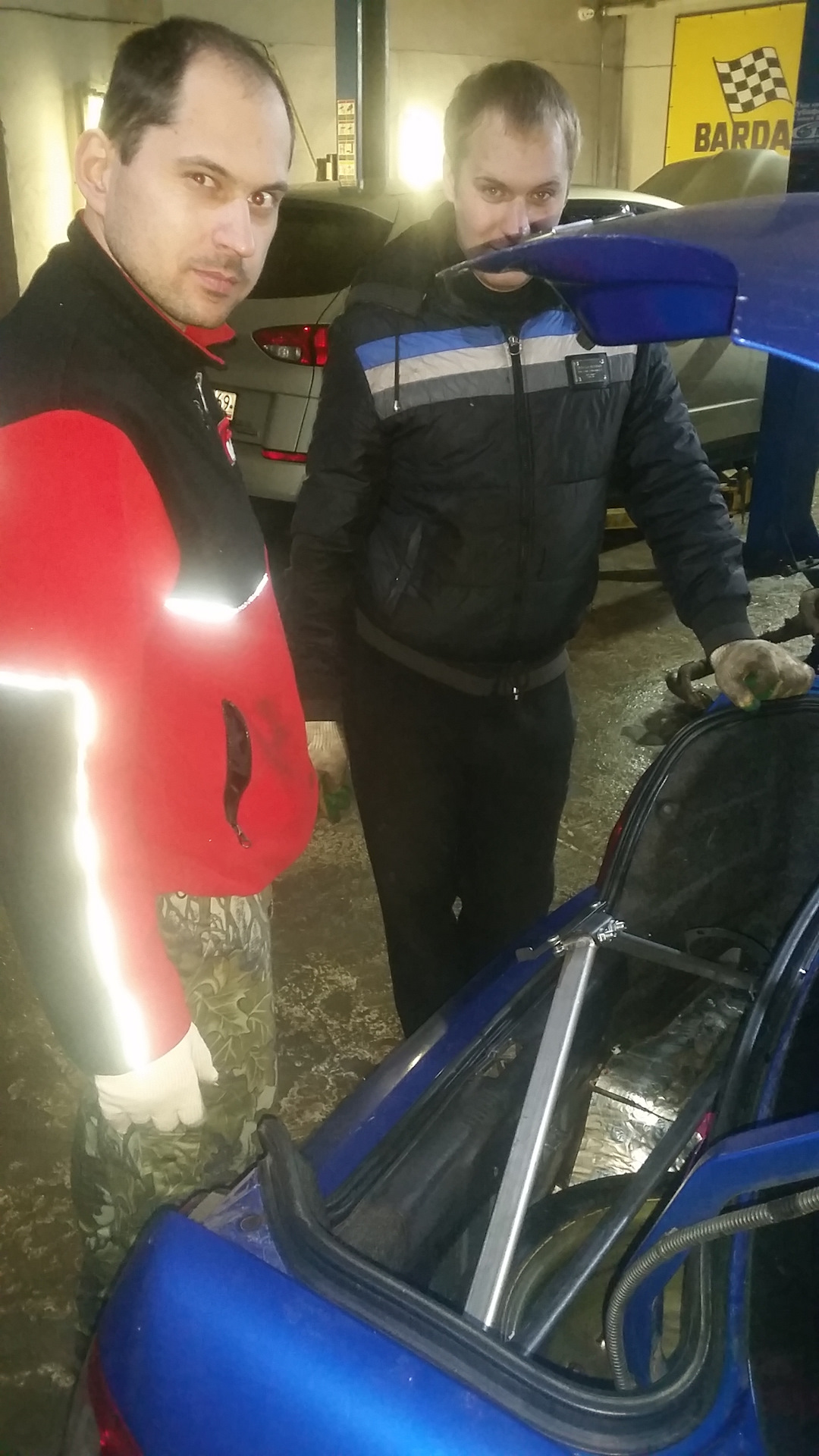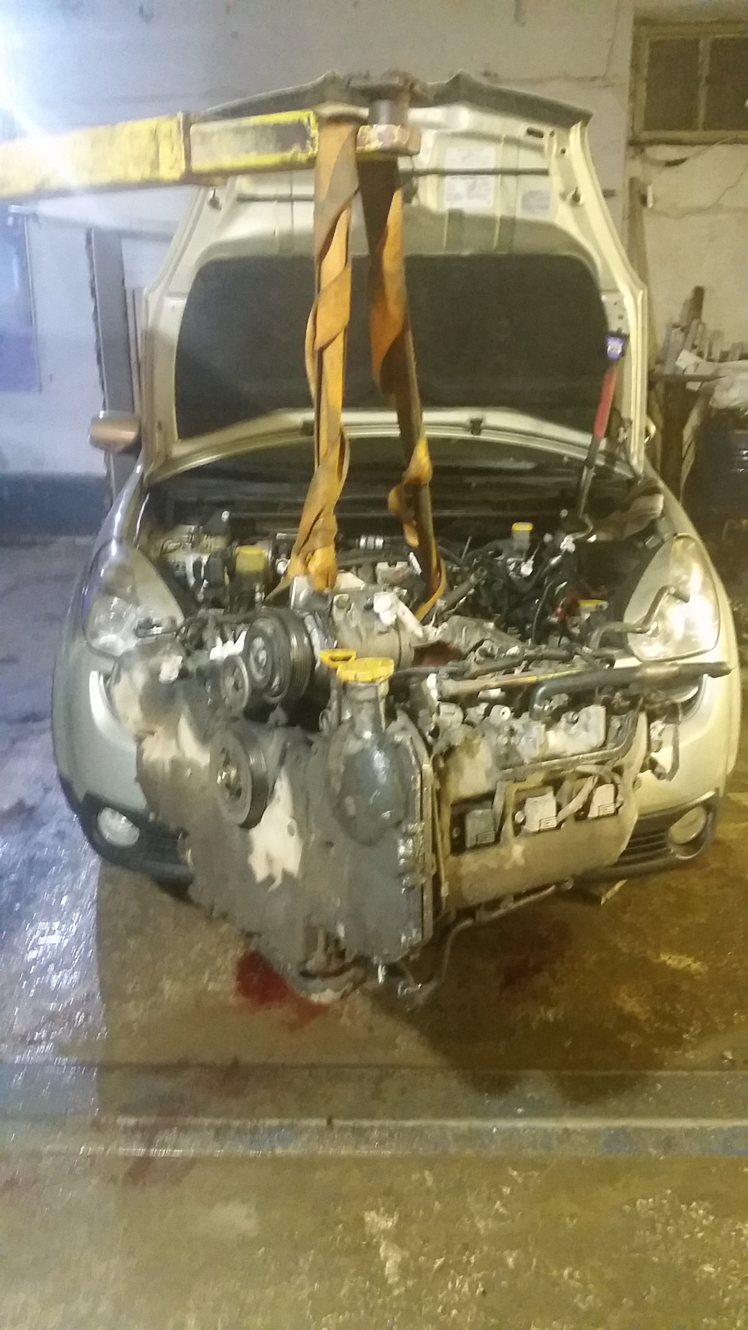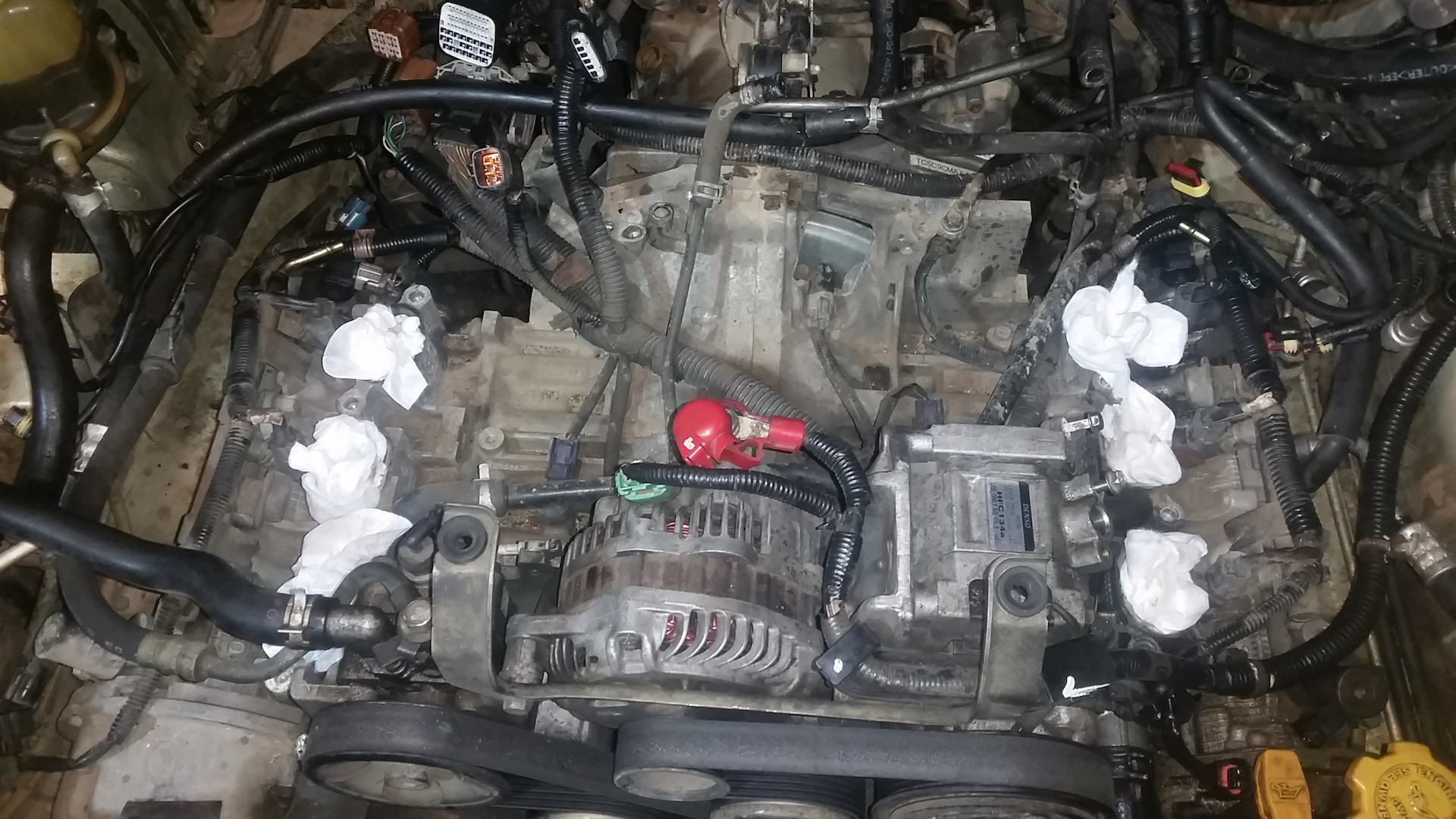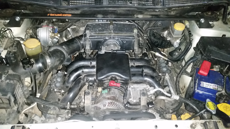 Начал в 13:30, в районе 15:30 приехал друг Рома на подмогу. Потом еще Сеня заскакивал, меряли заднюю распорку ultimate на коняшку sti. Хотели еще снять размеры под нижнюю заднюю распорку на трибеку, да не до нее было. В общем в 1:30 ночи мы выехали из сервиса. Но не обошлось и без проблем… слизало грани на последнем болте при откручивании пластины от бублика-вылечил сваркой😄. Обломился болт на впуске…Задолбался снимать этот гребаный быстросъем на бензомагистрали, подсказал один хороший человек как справиться- Саша спасибо большое! Победил с помощью куска пластиковой карты, согнув ее трубочкой и вставив ее между пластиковой защелкой и бензотрубкой. Если 2.0 и 2.5 в течении 3 часов лежал на столе, то с трехлитровой сволочью не всё так просто. Или то, что в первый раз снимали…из за этого так долго…хз.
