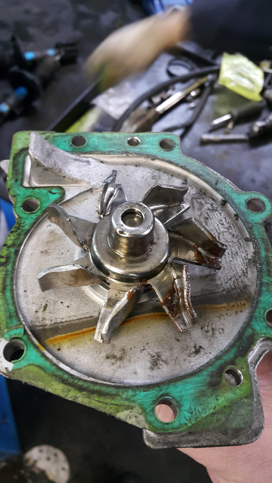 Может и не совсем глупая затея — красить. Коррозия присутствует в явном виде на старой помпе. Вопрос влияет ли это как-то или нет…