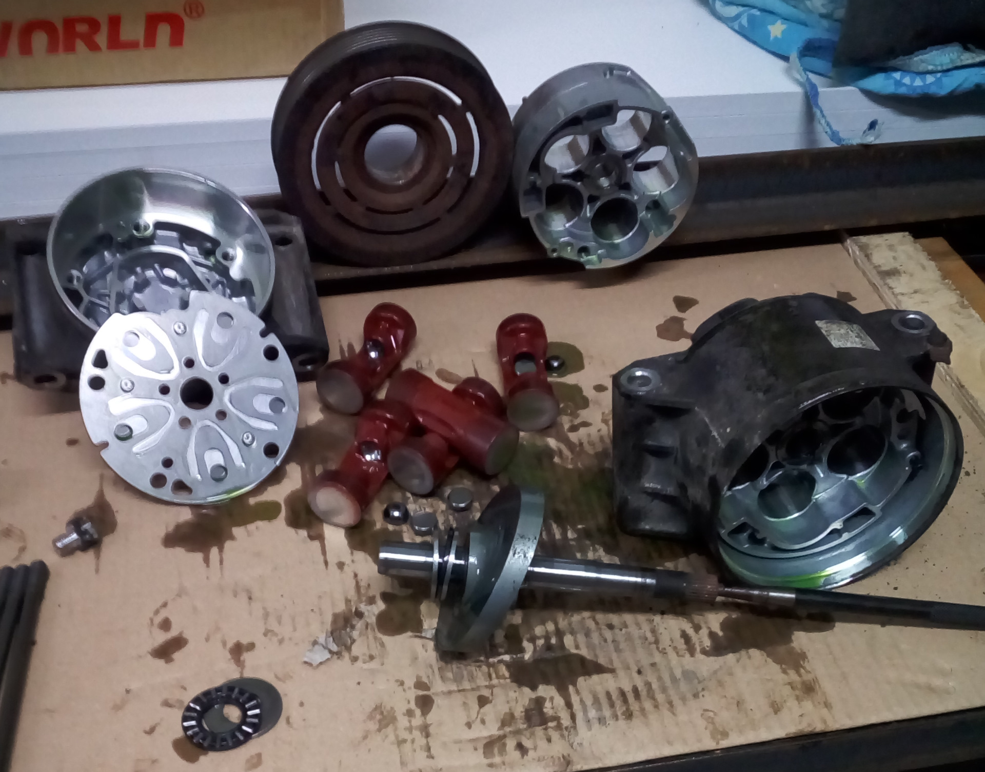 Сальник врятли найдёшь, а клинить могли сами поршня или механизм скольжения на шайбе в роле коленвала которая. Мы тупо его выкинули и поставили другой, т.к. цилиндры все поизшоркало из за того что грязь попала.