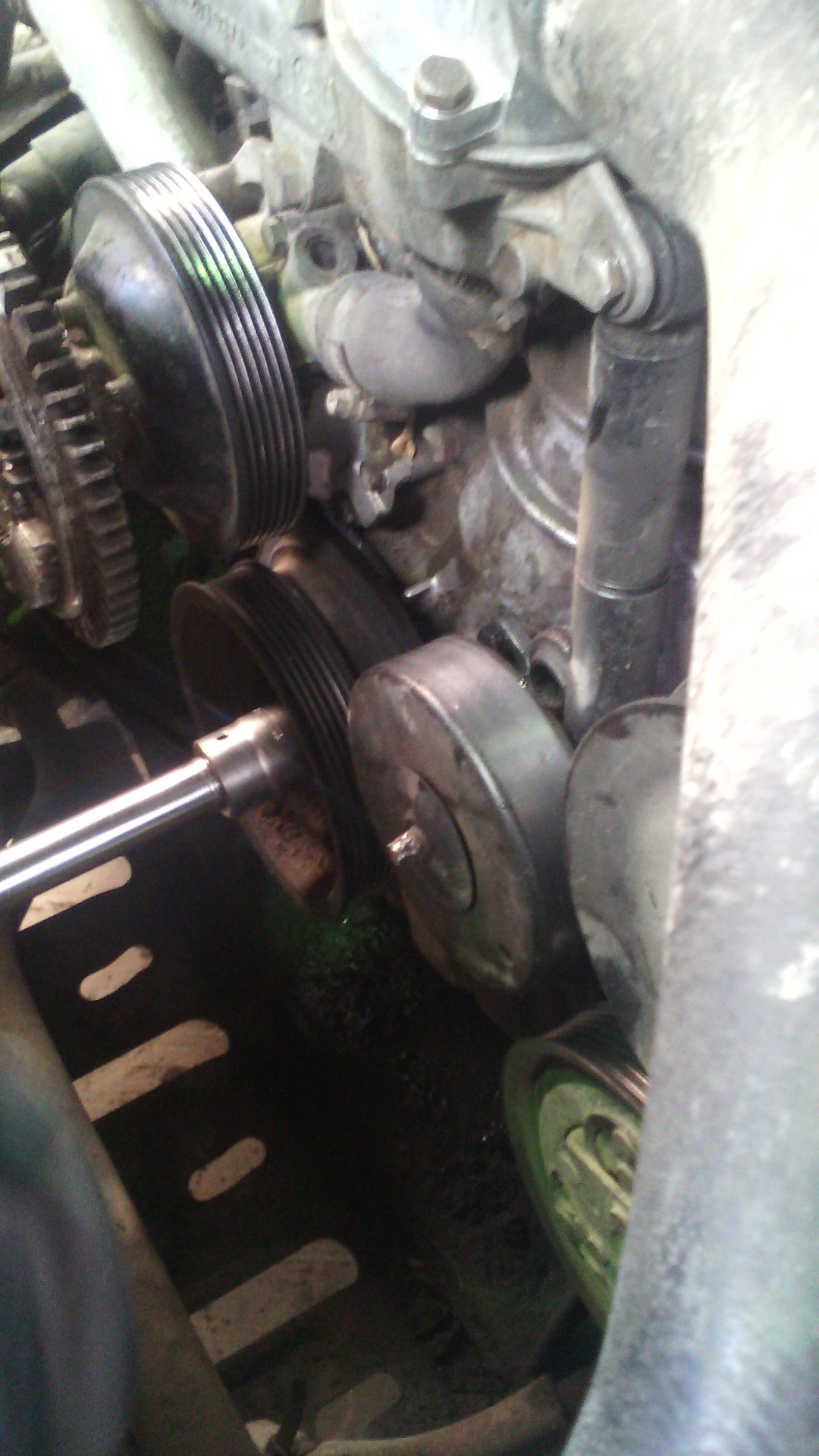 После снятия крыльчатки снимаем ремень и вот уже можно спокойно подлезть к шкиву.