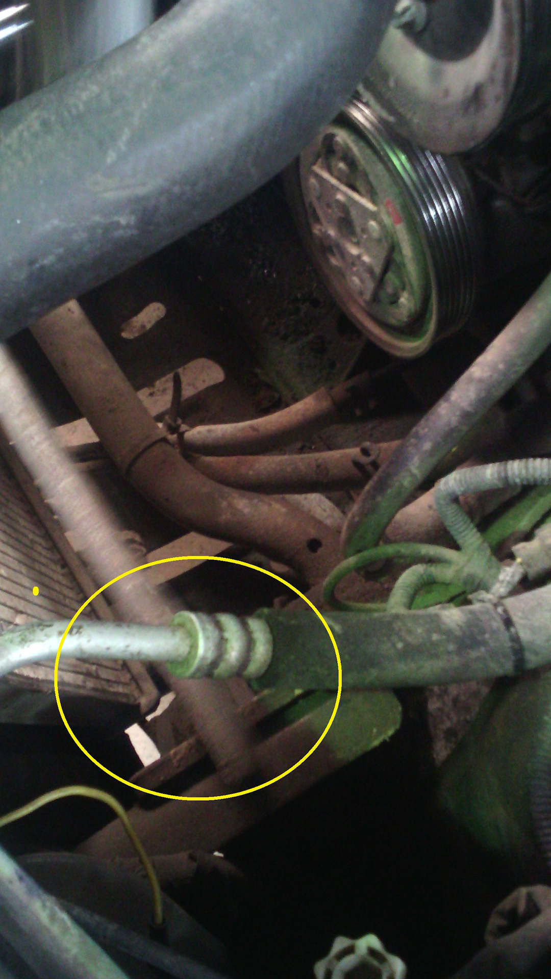 Далее трубой или мантировкой упираемся в место, показанное желтым кружком.