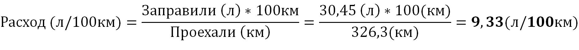 а если проехать ровно 100 км, то при такой методике заправки даже вычислять ничего не нужно будет — последний залитый объем в литрах и есть расход на 100 км )