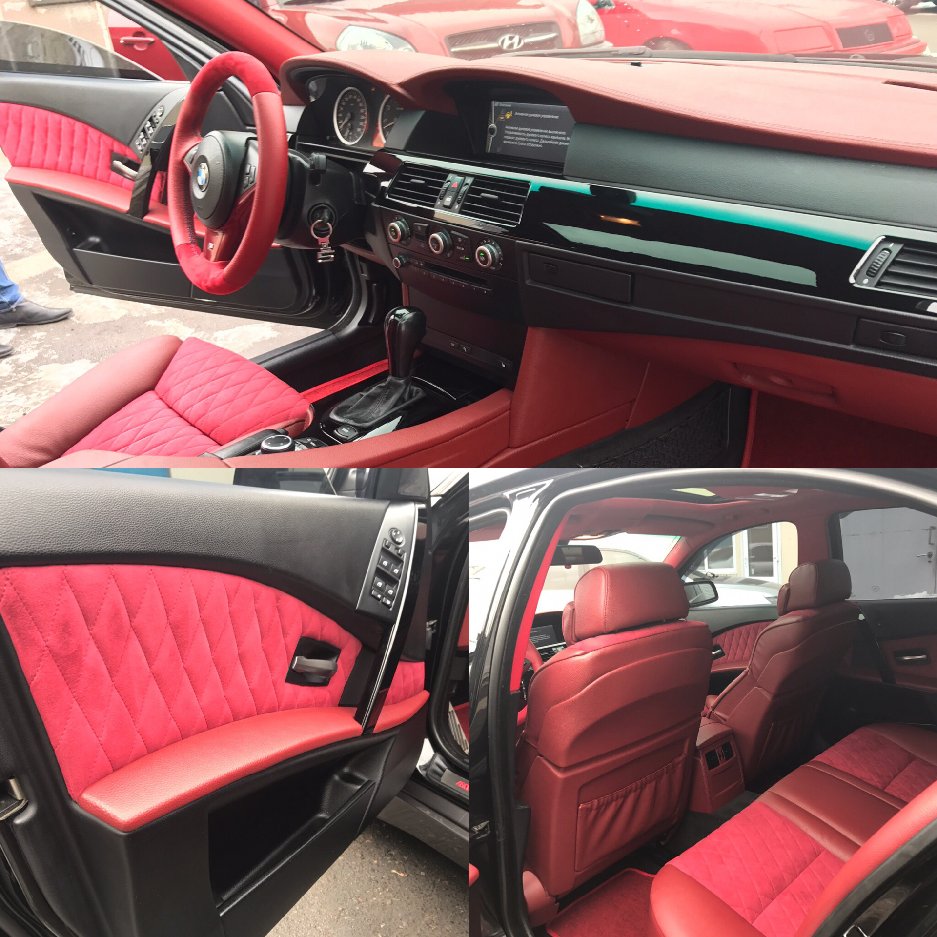 Во всем интерьере очень смущают вставки из алькантары и ромбики… Эти элементы явно лишние… Просто бордовая кожа (Раз уж Вам импонирует "красный") и все… Алькантара смотрится очень "несерьезно"…