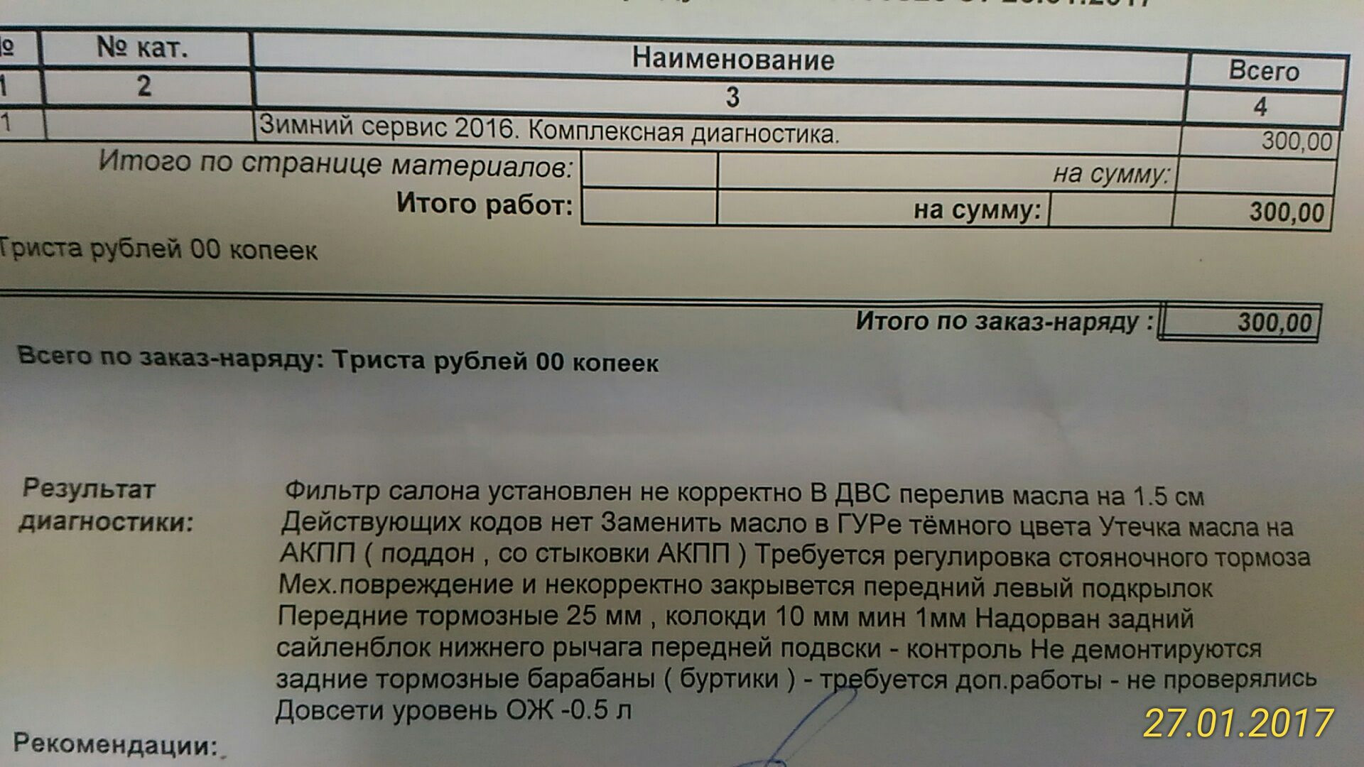 Приехал в сервисный центр, всё поменяли, — заодно поменяли тормозные колодки на барабанах.
