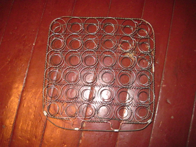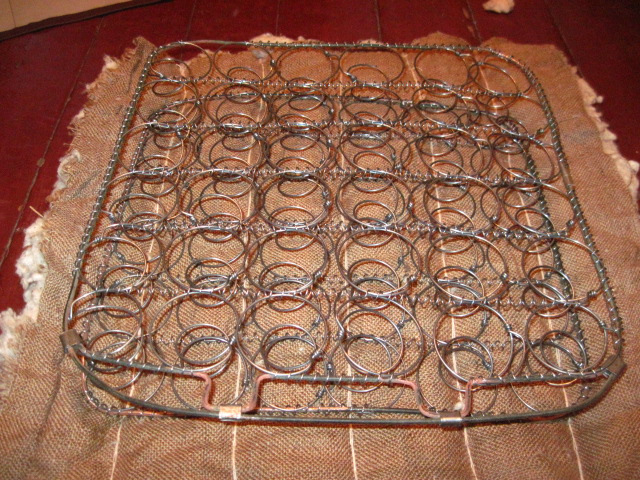 1)Пружинный каркас Пружины подошли от дивана IKEA(они чуть меньше диаметр 74 вместо 75+ передние пришлось "доработать напильником"), от него же пружинные связи. Распустил, связал, снова распустил и снова связал. Такое увлекательное занятие, почти как кольчугу плести…Пружинный каркас вышел уже на 2см.;(