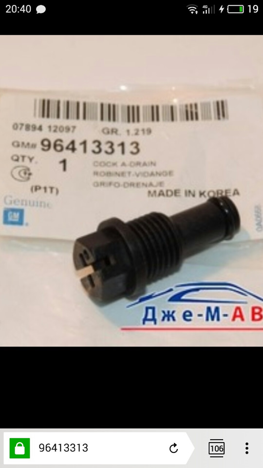 — патрубок системы охлаждения верхний 96553267. Из-за него все началось, а точнее из-за левого хомута (это мне в сервисе поставили, когда меняли термостат)