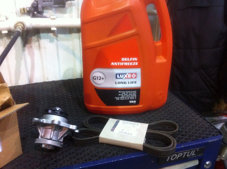 Сегодня заехал на СТО, предварительно купив 5л Антифриза. Взял еще ремень с гаража, он достался еще с прошлого владельца. Хотя и тот, старый ремень нормальный был, но решил сразу поменять.