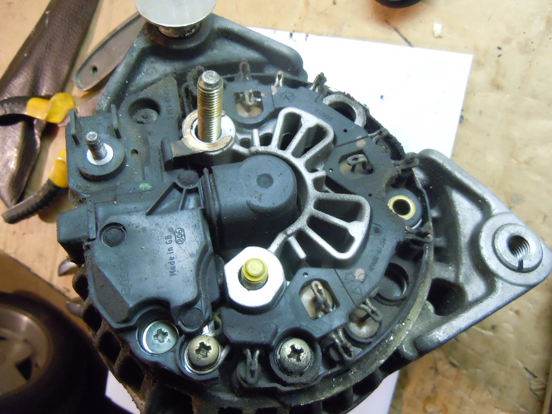 Отличия, вроде как все трое экземпляра построены на одном конструктиве с креплением со смещением на 60 град., первые два имеют дополнительную вентиляцию диодного моста и регулятора напряжения, такой же диаметр приводного шкива в 56мм как и оригинальный от омеги, разница только в посадке шкива на валу генератора в 3 мм, почему так самому интересно ибо блоки одинаковые, видимо вылет шкивов на вектровских двигателях уже меньше, дабы как то разместиться в тесном пространстве подкаподки. Этот момент можно будет подправить, длина вала генератора позволит подставить под шкив шайбу и вынуть его наружу еще на 1,5-2 мм. По вылету шкива больше подходит именно …030 но у него диаметр приводного шкива 50 мм, что может уменьшить натяжку ремня, шкив можно поменять, но я думаю что конструктивно внутренности завод расчитывал именно под тот диаметр и под дизельный мотор с его оборотами, по цене и количеству предложений лидирует 3-й вариант …030 на аллегро как гавна, но я его откинул.
