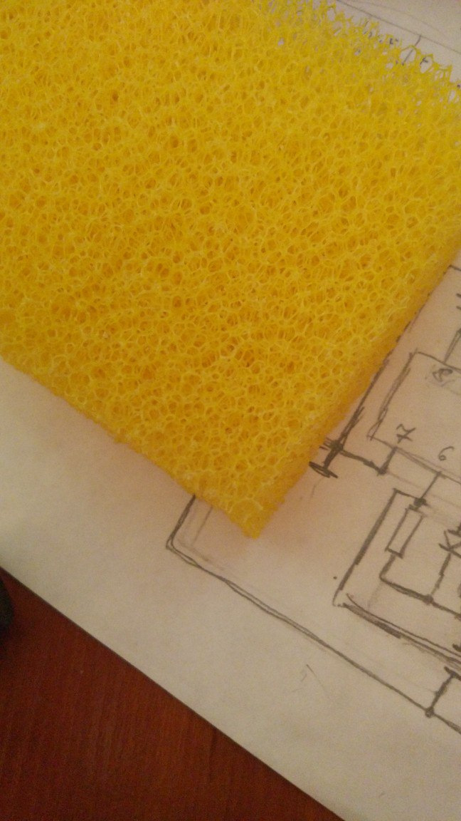 Было решено повторить тоже самое и на своих фарах. В хозмагазине была куплена губка для мойки ковров, которая имела примерно такую же зернистость. Из нее были изготовлены "цилиндрики", которые впоследствии были запрессованы в сапуны фар. Надеюсь, эта нехитрая операция даст свои плоды и органичит попадание песка в фару.