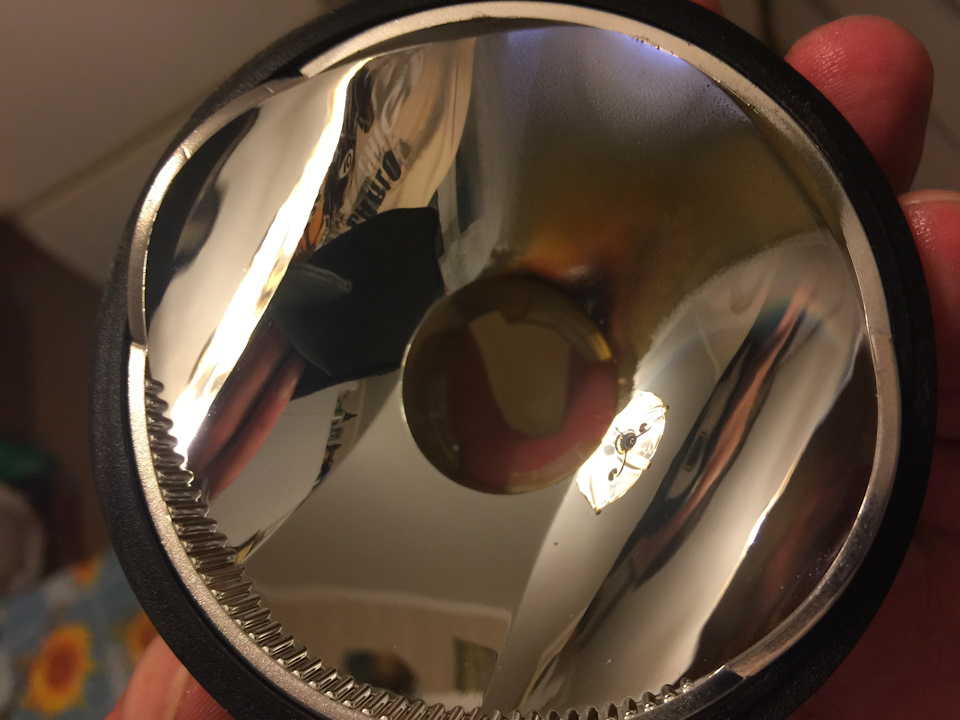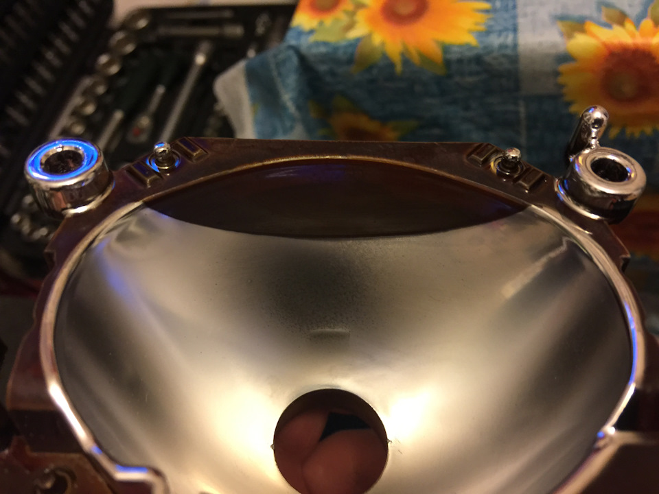 После частичного восстановления, принялся собирать линзованный модуль. Там, в принципе, ничего интересного, кроме небольшого наблюдения — колба на одной из ламп почему-то будто изнутри запеклась, на другой такого нет… Не знаю — является ли это сигналом к смерти или нет?