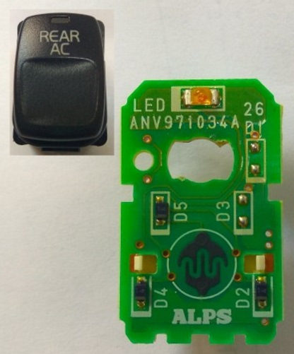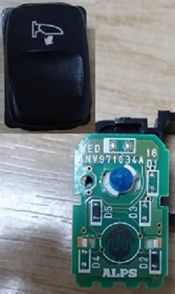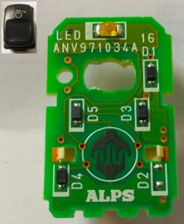 После этой фотографии я выдрал все имеющиеся у себя в машине кнопки и вскрыл их. На печатной плате пять мест для диодов, которыми и задаётся функционал кнопки. Из вскрытых мною кнопок выявлены различные комбинации из двух или трёх диодов.
