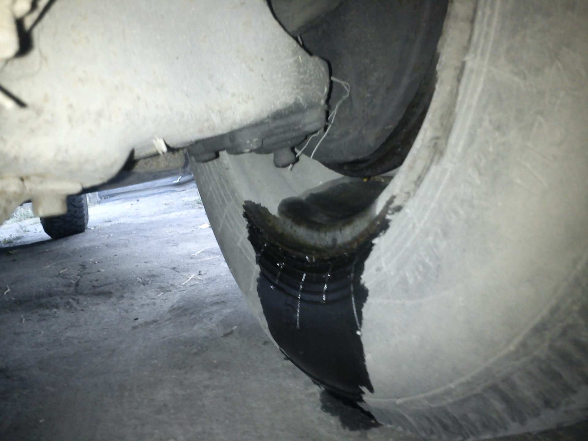 И тут на тебе! Из под переднего левого барабана полилось…