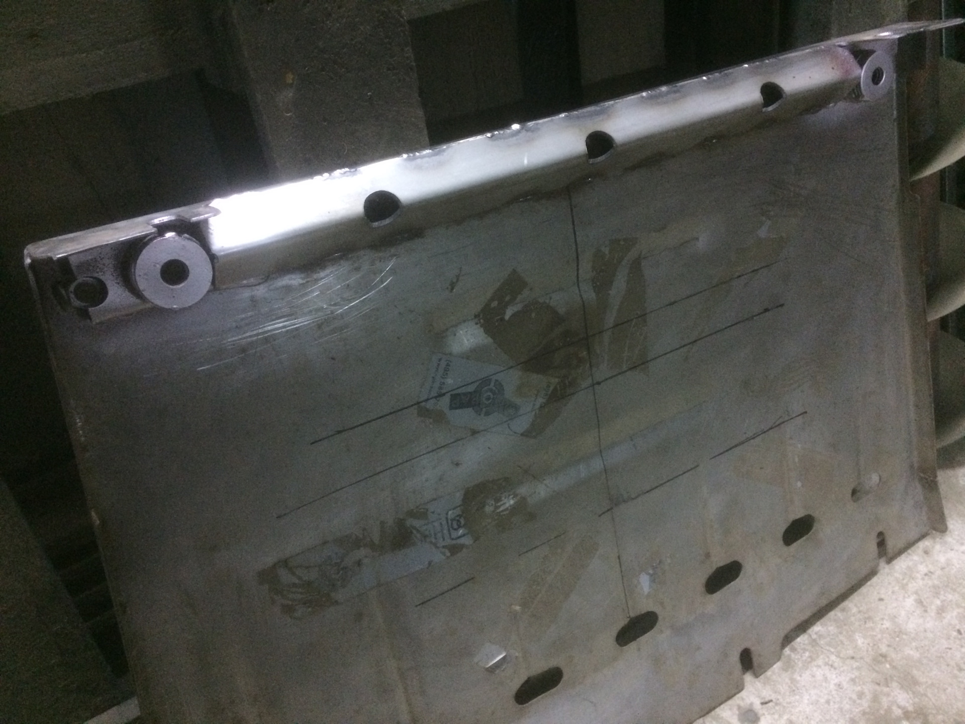 Защиту усилили уголком с внутренней стороны, и приварили шайбы закладные и выдавили прессом ребра жёсткости.