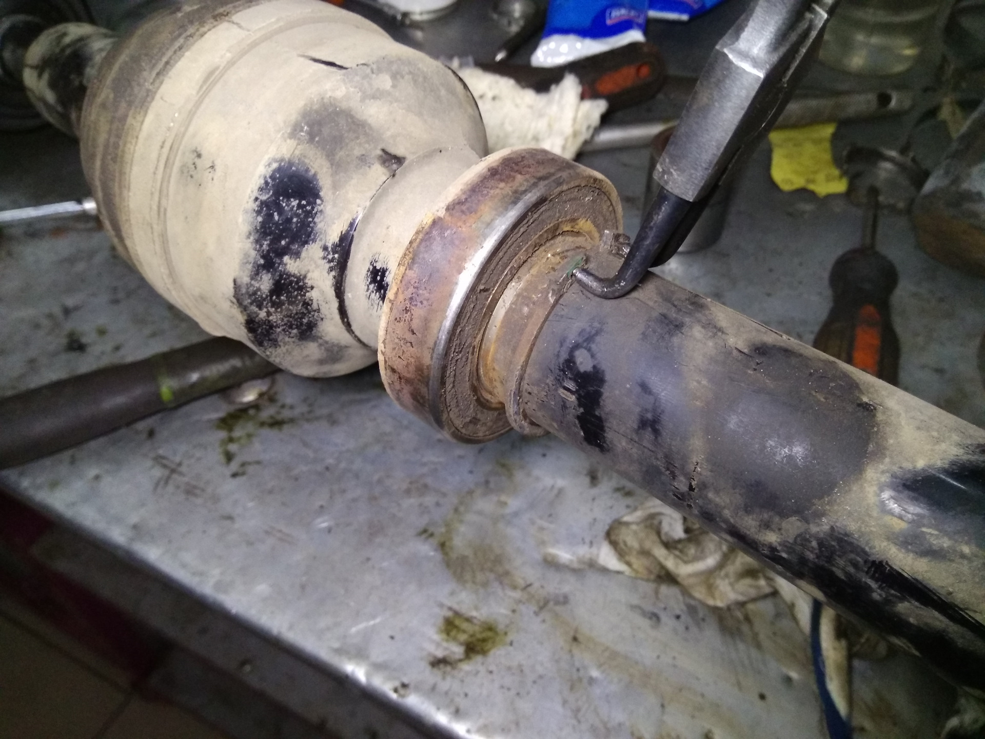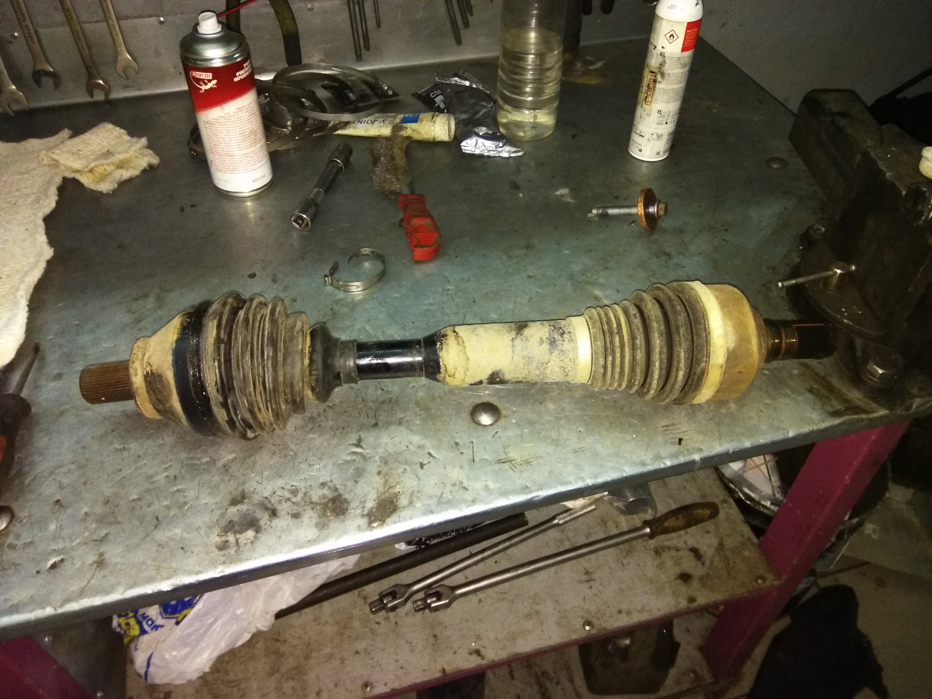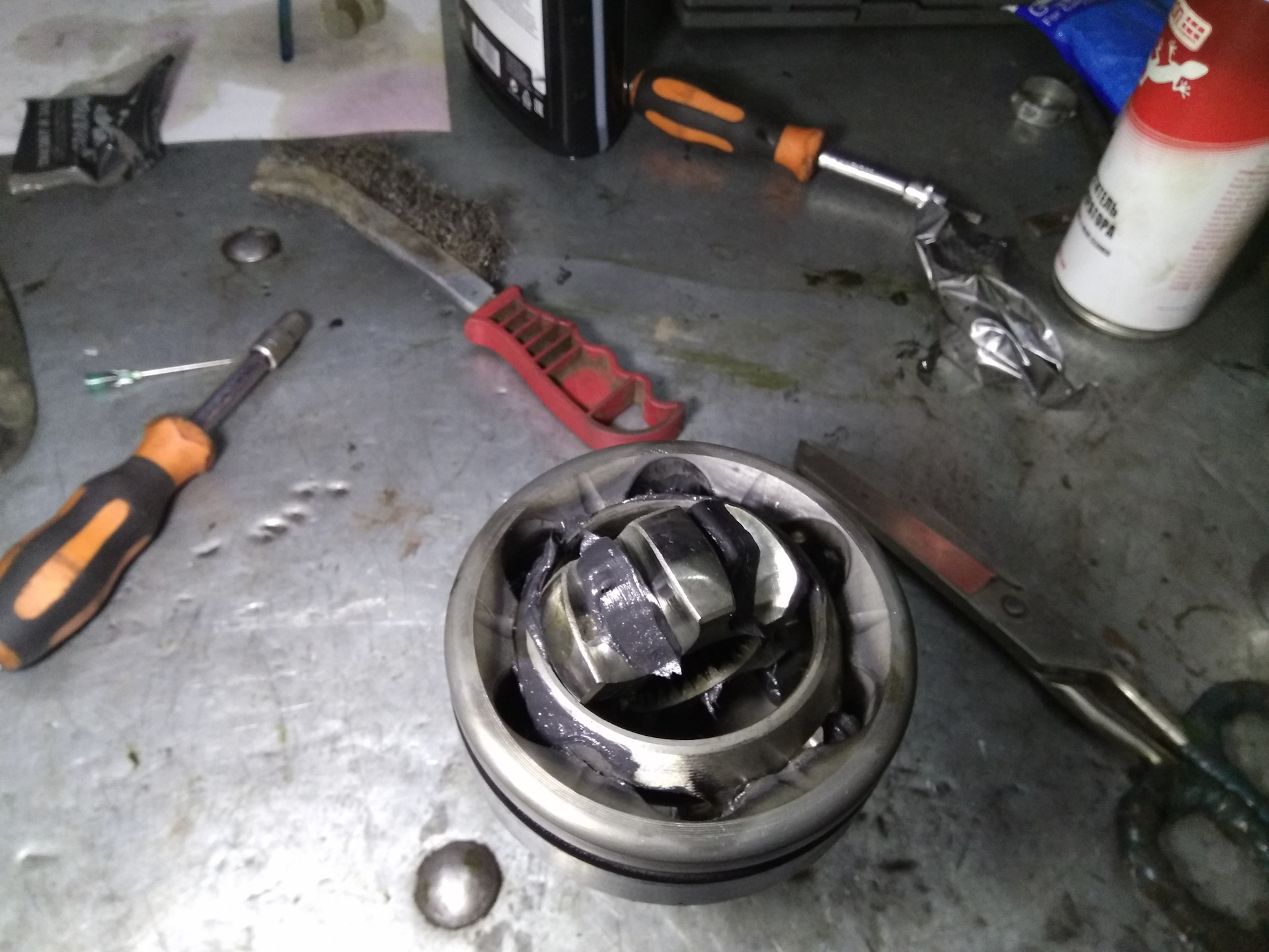 Но всё же при ремонте мне удалось исправить кое чего. Опорный подшипник правого привода при осмотре потребовал замены.