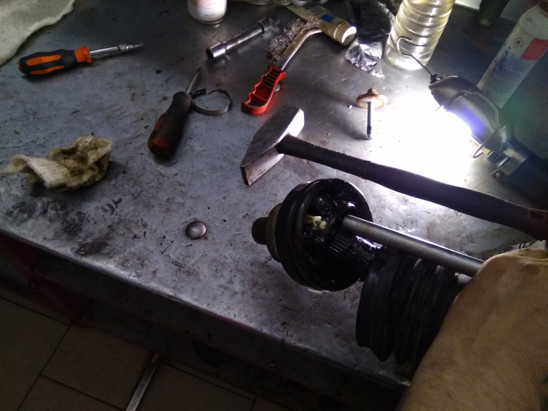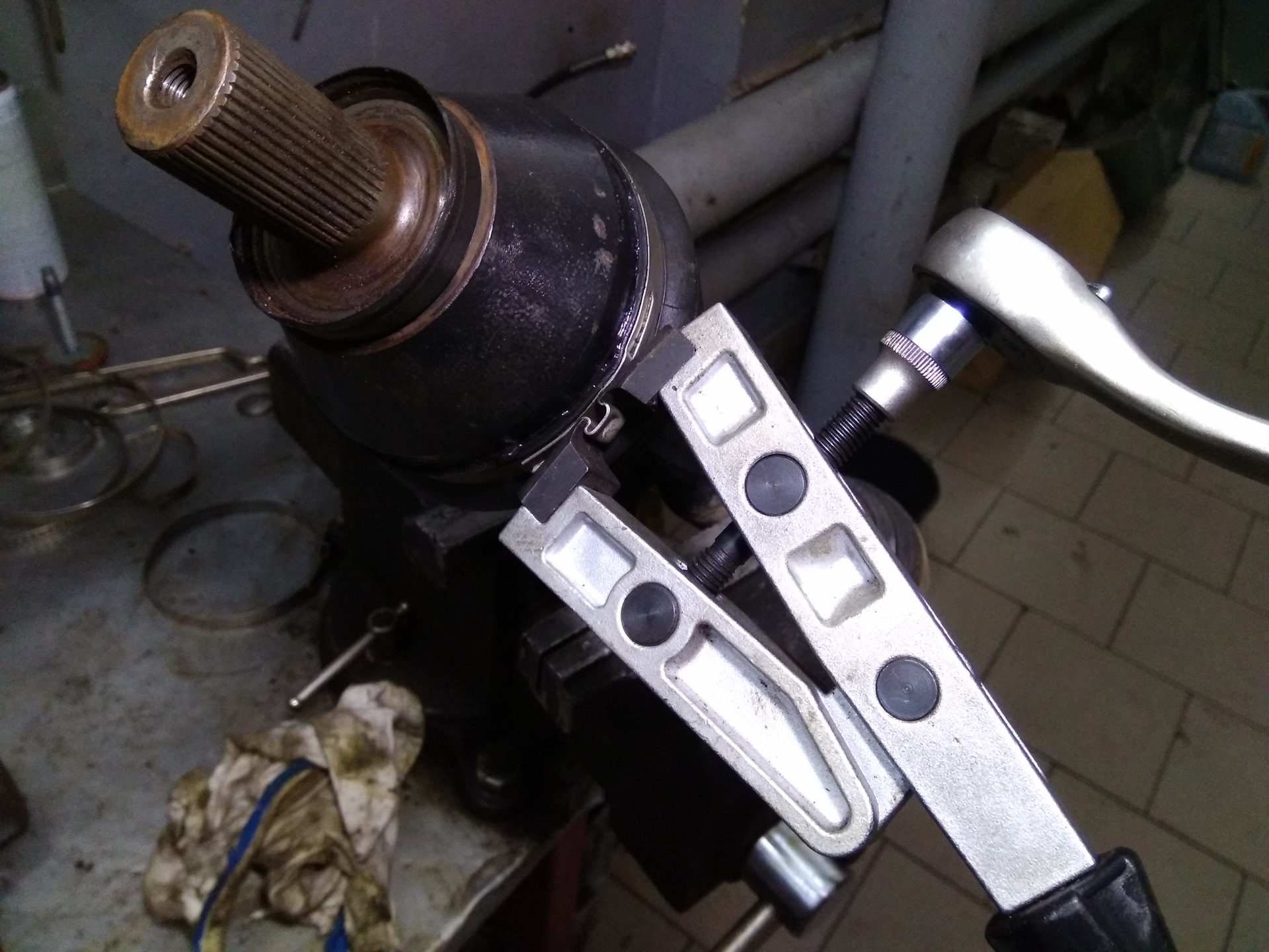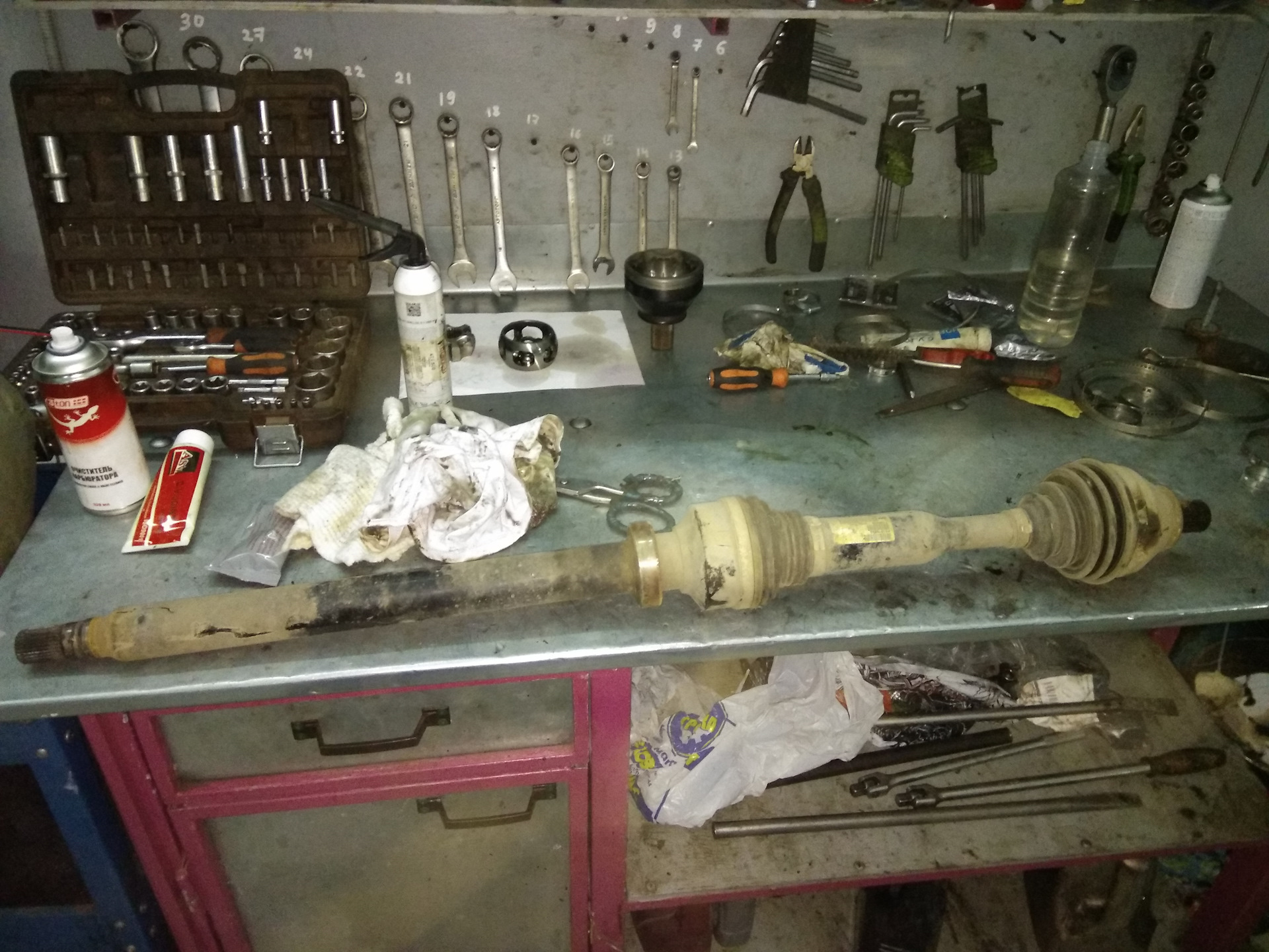Но всё же при ремонте мне удалось исправить кое чего. Опорный подшипник правого привода при осмотре потребовал замены.