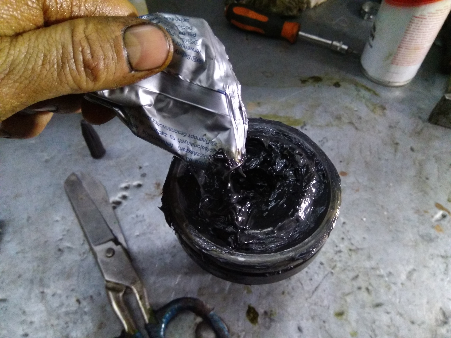 Заполняю смазкой шрус. Смазку собрал по всем углам бокса, всё равно что "мертвому припарок".