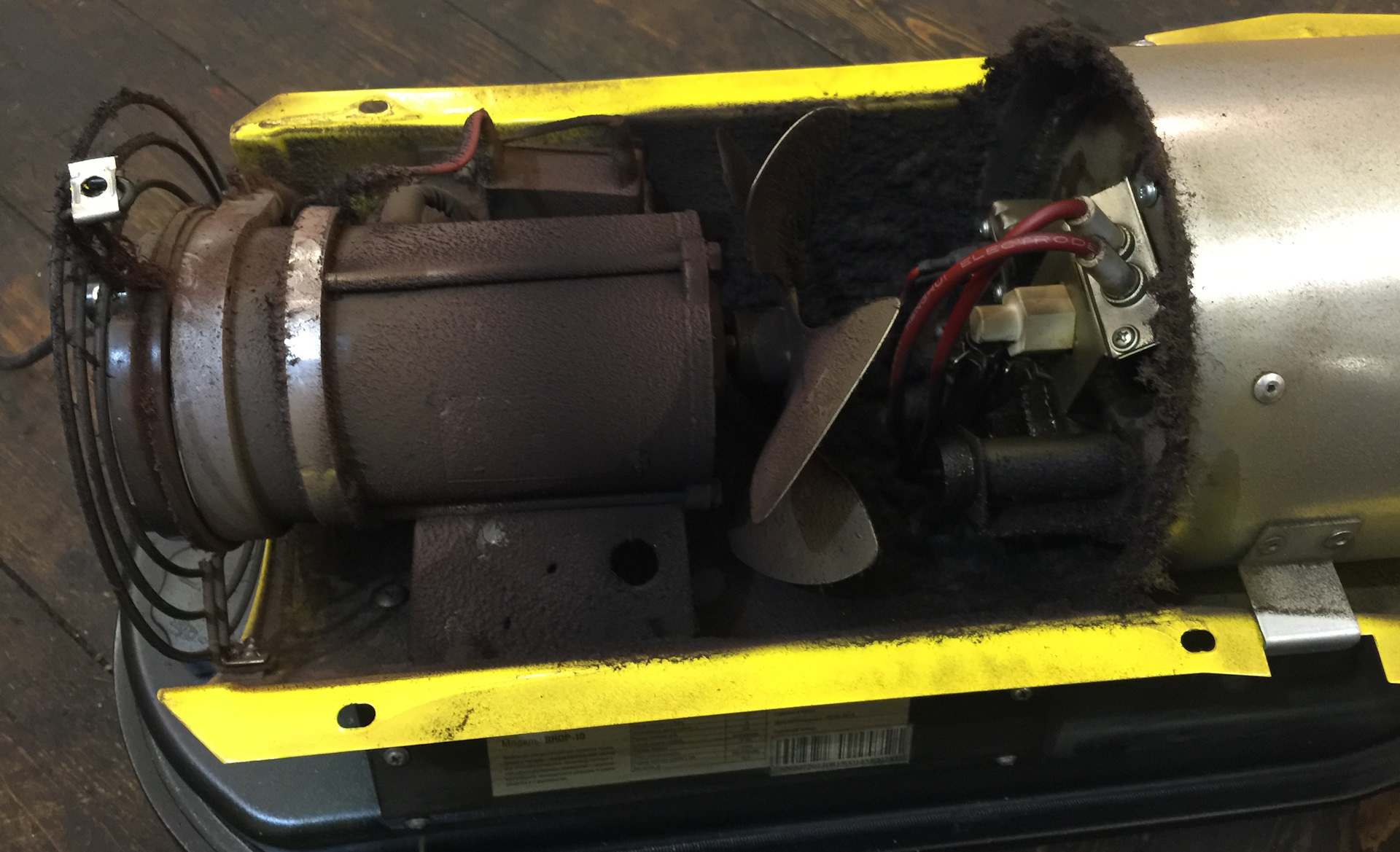 …в общем, случилось ужасное — пушка вместо того, чтоб греть, создает дымовую завесу, так что пришлось ее разобрать и посмотреть, что с ней не так.