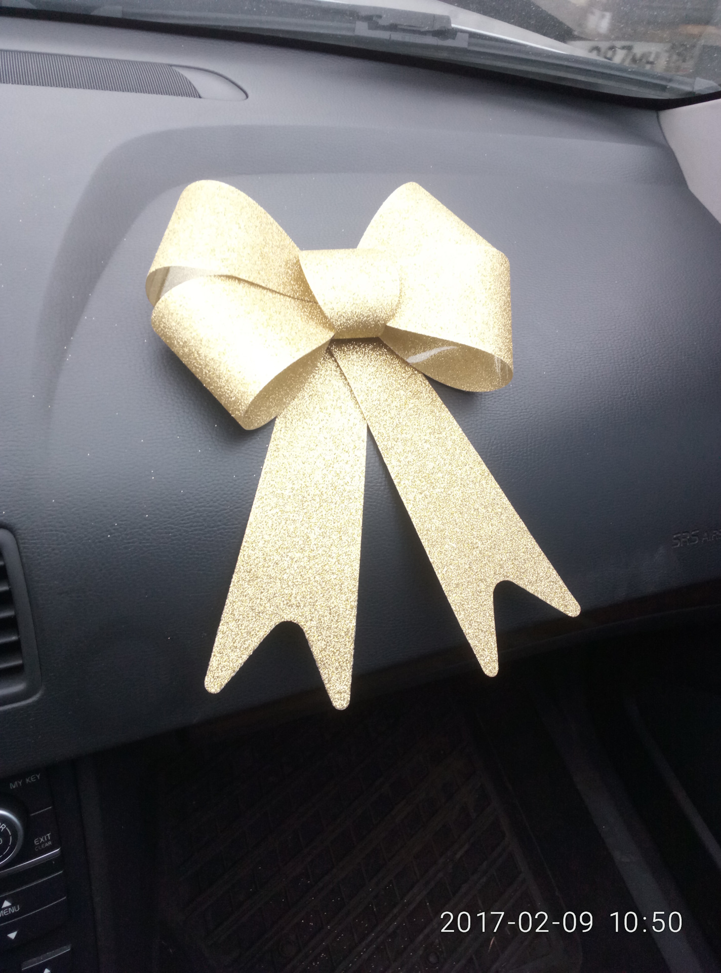 Смотрю на лобовом стекле висит огромный Золотой бант — т.к. сегодня др у меня. Перенес бант на торпеду.