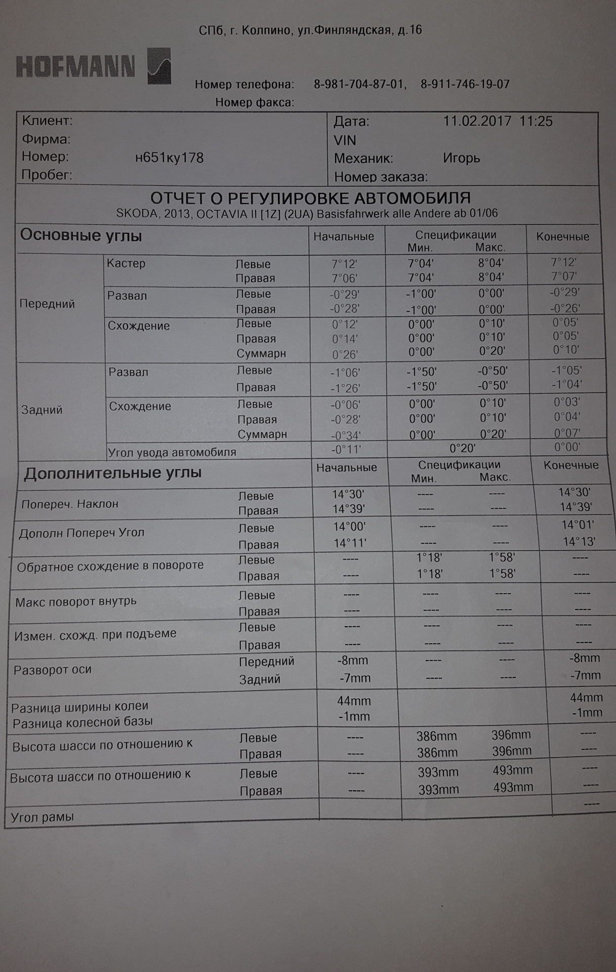 Сход/развал делал в Колпино, Финляндская улица, 16к1, как всегда в СТО "ТОРМОЗНЫЕ СИСТЕМЫ".