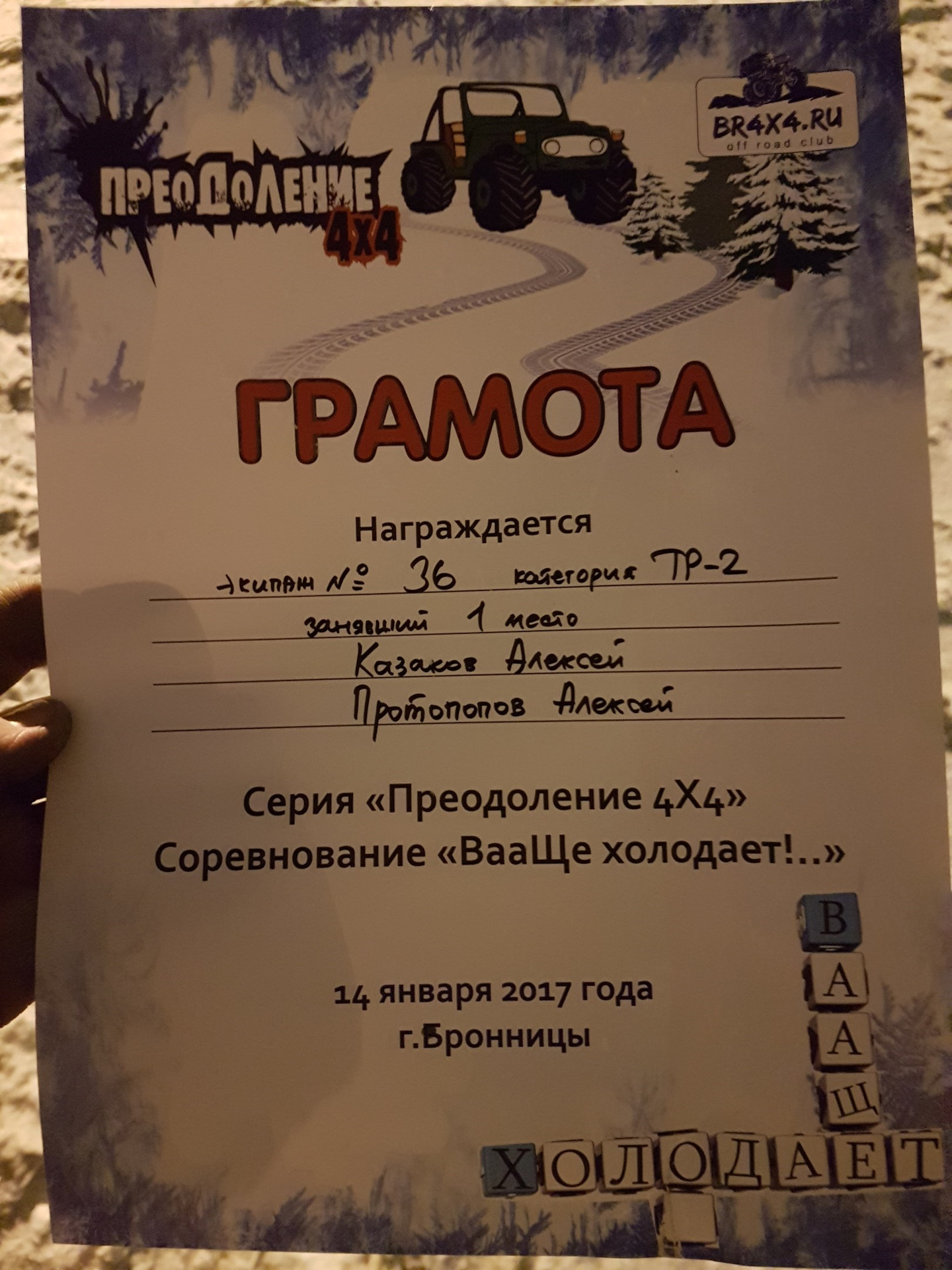 Поздравляю Алексея Казакова и Протопопова Алексея с лидерством в чемпионате по трофи-рейдам в классе ТР2. Пожелаю дальнейших побед, занимайте только первые места. Да прибудет с вами сила Td5 Power///