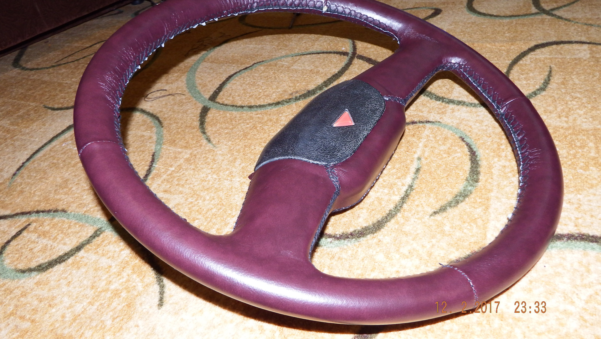 И так парни, сейчас уже делать стало совсем не чего, все что можно было сделать дома в тепле все сделано, но руки то чешутся, и вот надумал затянуть руль в оплетку, хотел кожей, но когда увидел ценник на нее решил все таки затянуть в кож.зам. немного не доделан, не хватило нитки и клея, но завтра доделаем, и буду затягивать ручку кпп так же, она пластиковая от евро и сошью чехол на рычаг, так что думаю выглядеть будет эстетично!