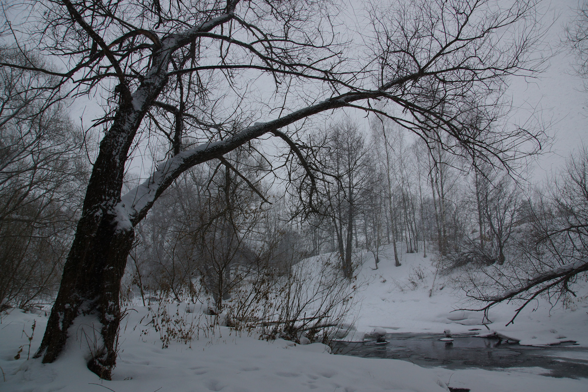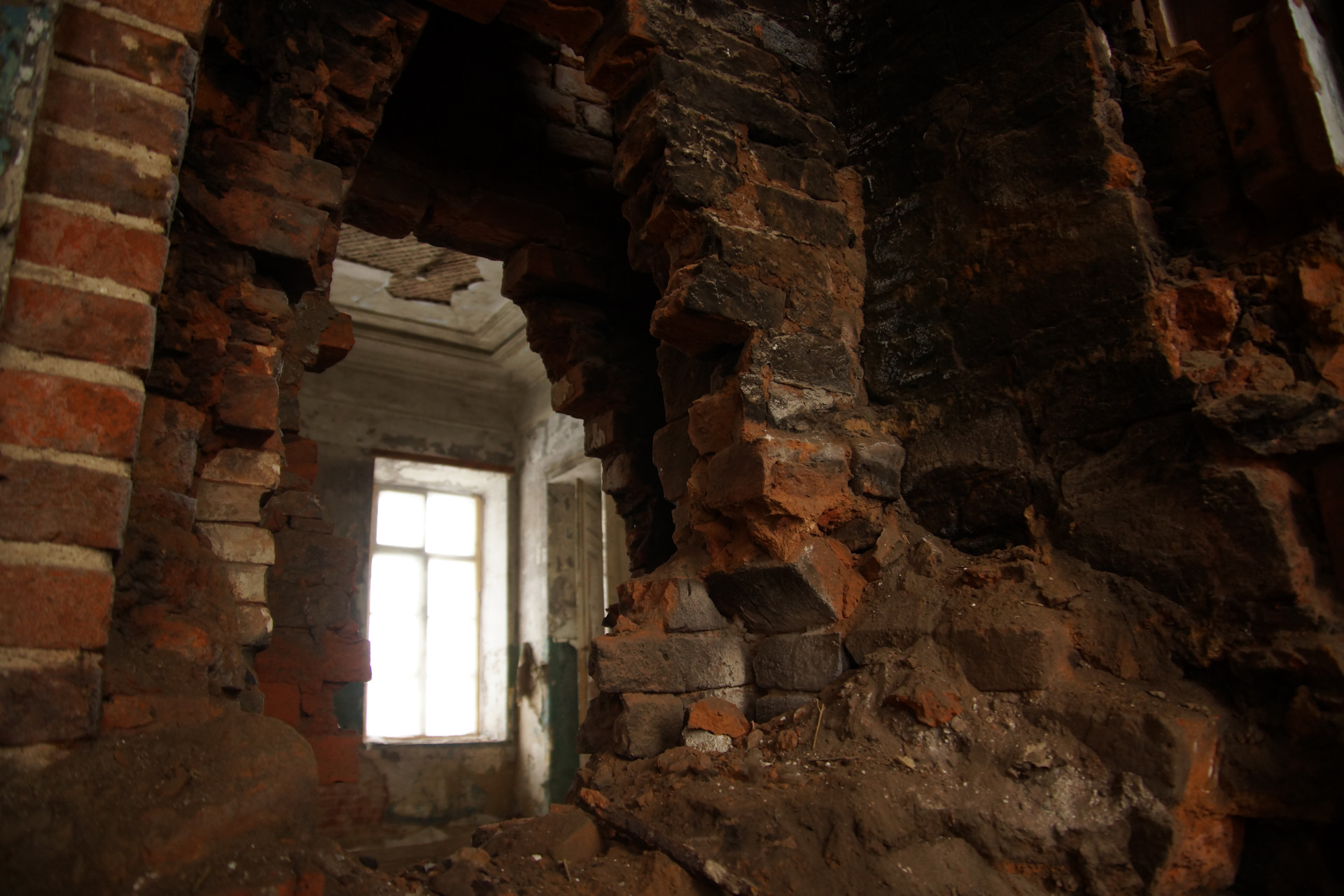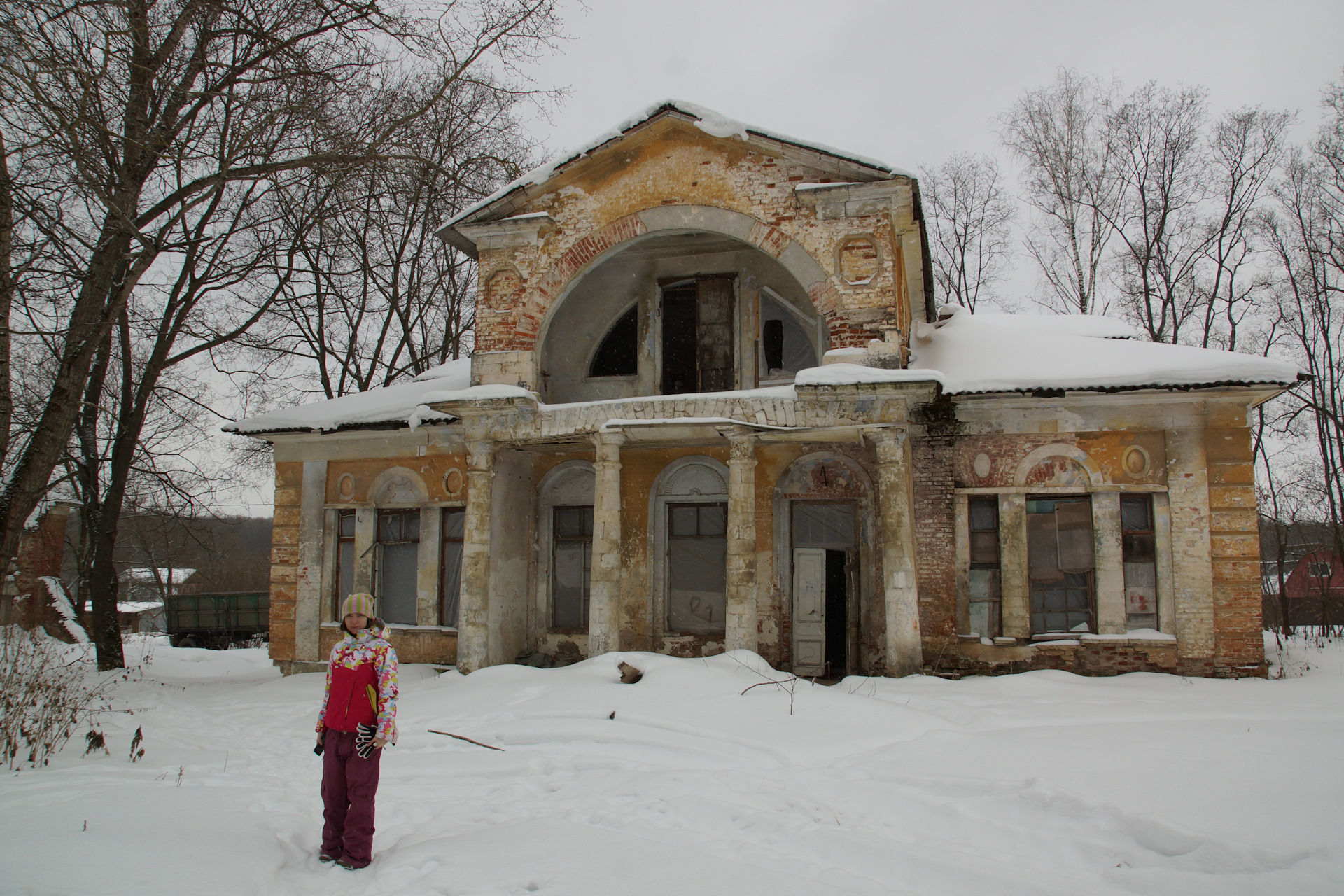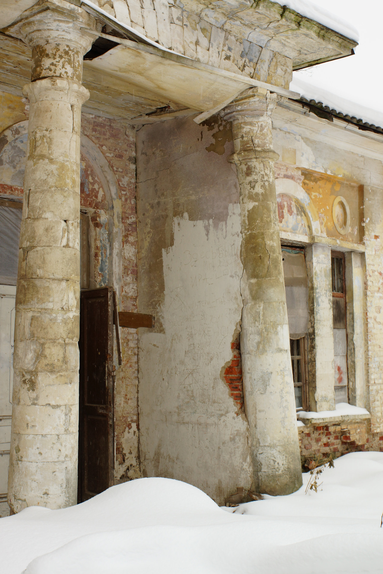 Зашёл во флигель. Стало тихо-тихо. Слышно, как снег опускается сквозь зияющие дыры окон на пол.