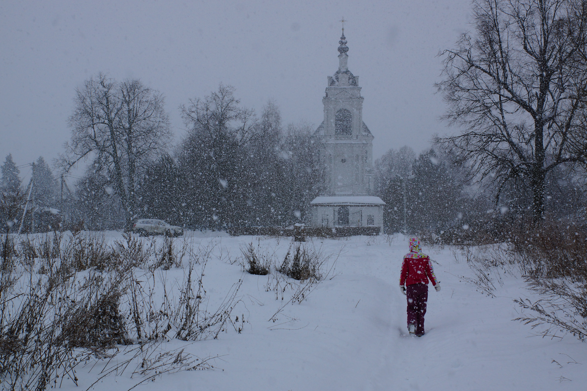 Погода выдалось идеальная. -4, ветра нет и крупные хлопья снега валятся с неба.