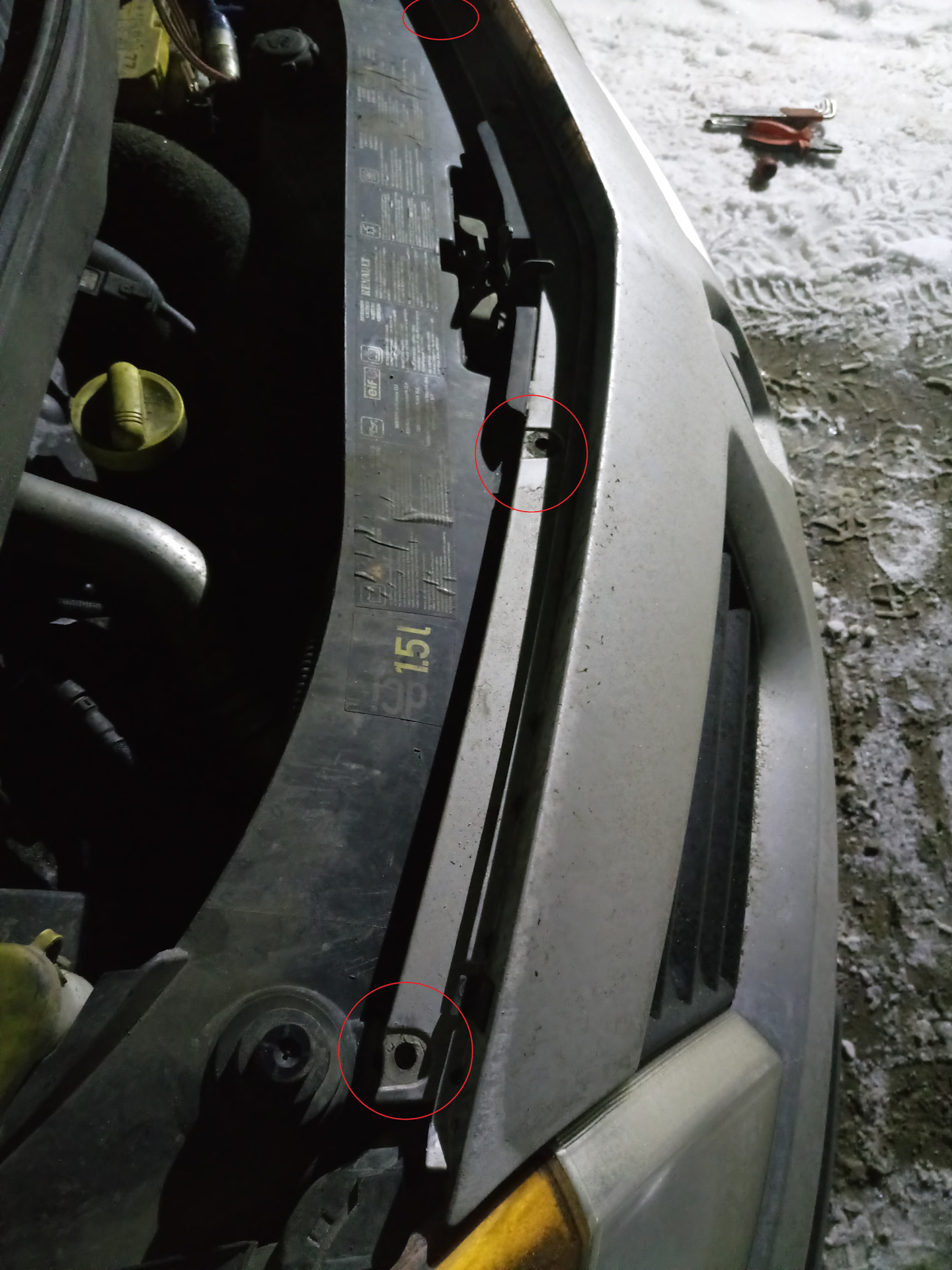 Вынимаем 4 клипсыОткручиваем один болт, отгибаем локер.Когда отогнули локер, видим еще один болт, он держит бамперСнятие бампера занимает минут 20Болты держащие фару, их 3ПТФка держится на 2-х болтахвинт регулировки фарывинт регулировки птфЗащита держится на 4-х болтах, снять можно после бампера, а то ставить будет не удобно(бампер)