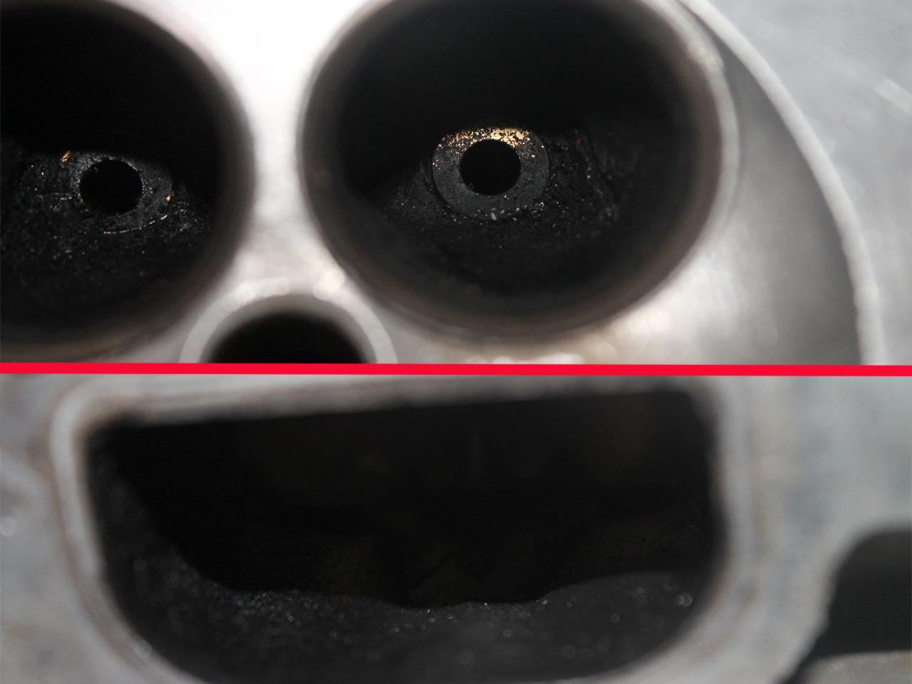 в клапанных каналах было очень много нагара, через какое то время кусками начнет отваливаться и может стать причиной прогара клапана, ЧИСТИМ ДО МЕТАЛЛА